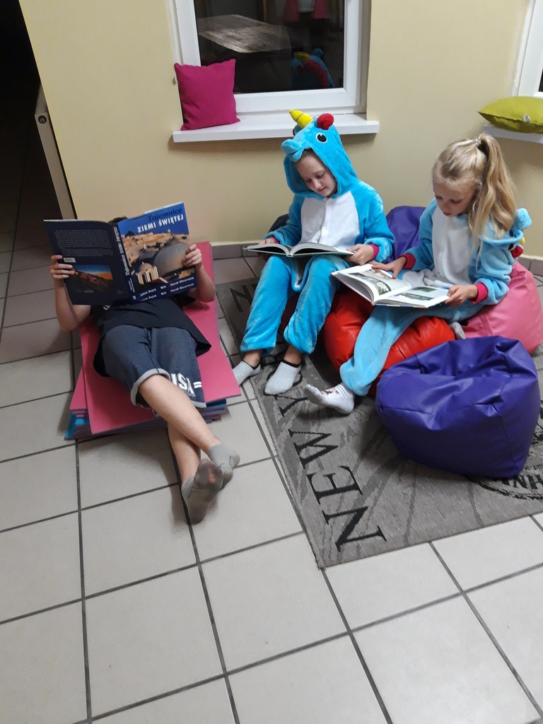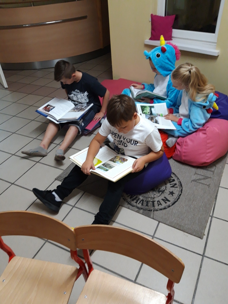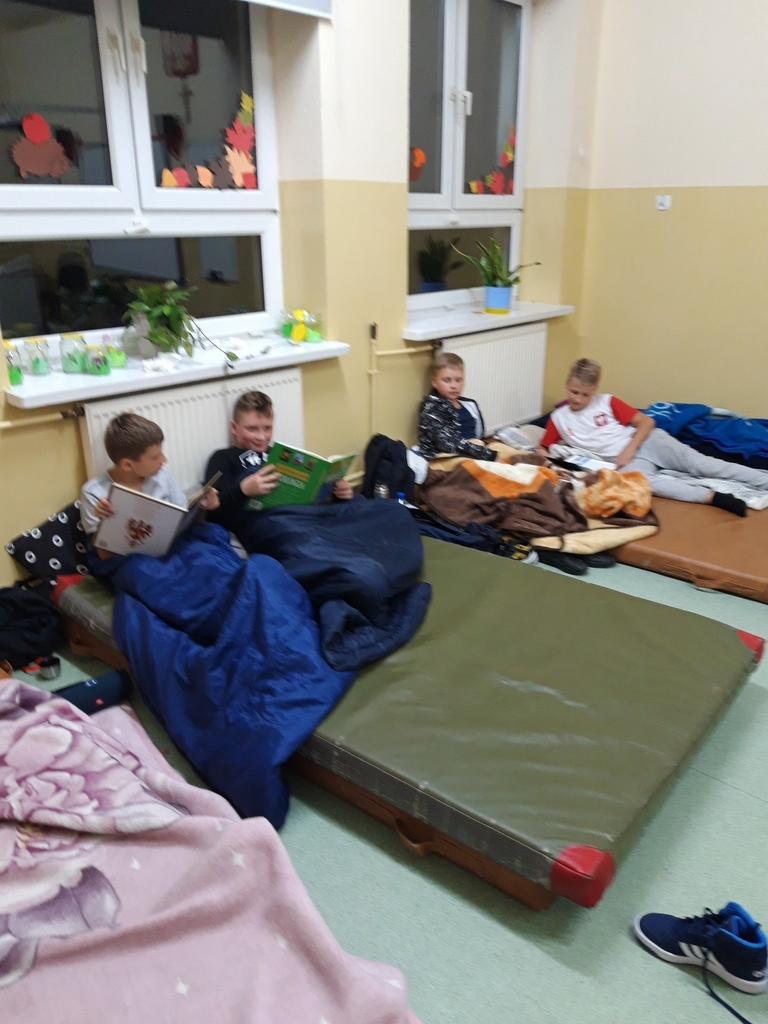 Zasadniczym celem spotkania było spędzenie wspólnie nocy przy czytaniu książek. Zakładaliśmy wspólne czytanie lektur, jednak ostatecznie skończyło się na książkach ilustrowanych. Noc ta przybrała dla nas urozmaiconą formę, mianowicie: wspólnie przeżywaliśmy minione wakacje, każdy opowiadał o przygodach, które go spotkały. Dzieci opowiadały gdzie były, co widziały oraz jak minął im ten piękny wakacyjny czas. Poza wspomnieniami wakacyjnymi snuliśmy wspólnie plany na rozpoczęty rok szkolny.