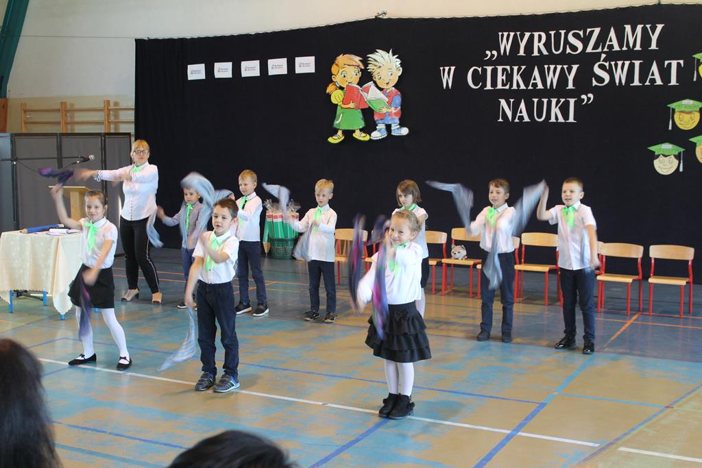 W programie artystycznym, przygotowanym pod okiem wychowawczyni Bożeny Konieckiej pierwszoklasiści zaprezentowali to, czego zdążyli się nauczyć przez krótki czas pobytu w szkole. Pokazali swoje umiejętności wokalne, recytatorskie i taneczne. Pochwalili się wiedzą o naszej ojczyźnie i znajomością zasad, które ułatwiają prawidłowe funkcjonowanie w szkole i grupie rówieśniczej. Swoją postawą udowodnili, że są gotowi do złożenia uroczystego ślubowania.