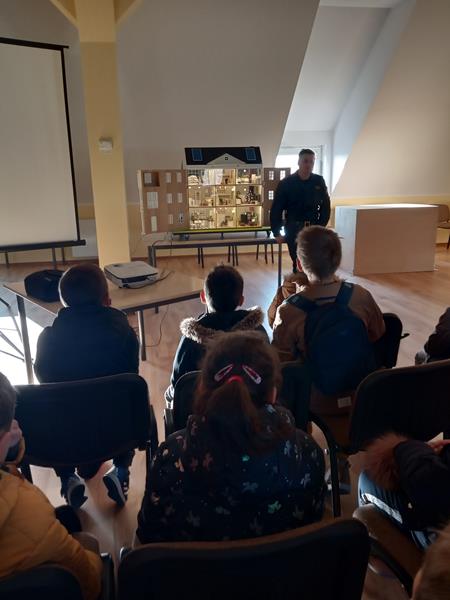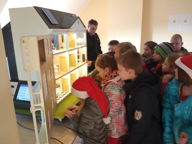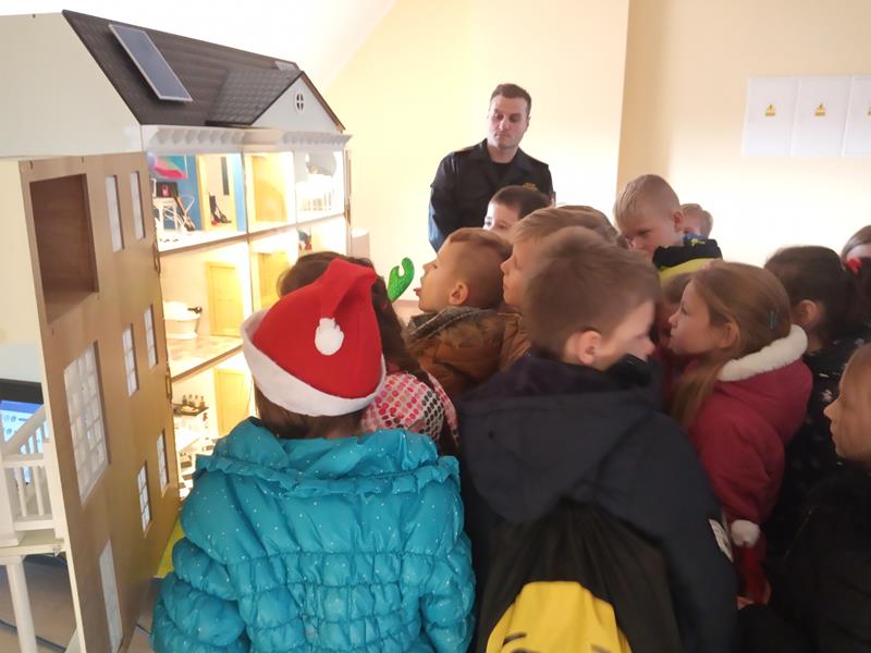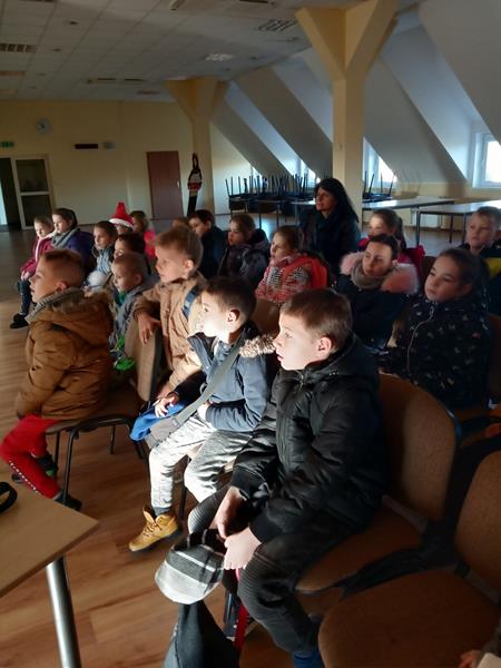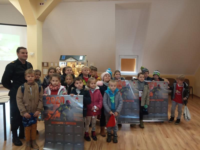 W tak ważnym dniu najmłodsi uczniowie wyjechali do kina ,,Sokolnia”, aby wspólnie obejrzeć film ,,Baranek Shaun”. Dzieciaki odwiedziły także Komendę Powiatowej Państwowej Straży Pożarnej. Uczestniczyły w pokazie zagrożeń pożarowych występujących w domu jednorodzinnym prezentowanym na multimedialnym symulatorze. Prowadzący spotkanie mł. ogniomistrz Marcin Nachowiak opowiedział uczniom o niebezpieczeństwach związanych z możliwościami wystąpienia pożaru, a także jak się zabezpieczać, żeby do takiego pożaru nie dopuścić. Zaprezentował krótkie filmiki, na podstawie których uczniowie utrwalili niezbędne informacje o tym, jak należy się zachować jeśli jesteśmy świadkami pożaru lub wystąpienia innego zagrożenia. Przypomniał najmłodszym numery alarmowe. Na pamiątkę spotkania strażacy przekazali szkole kalendarze PSP na rok 2020.