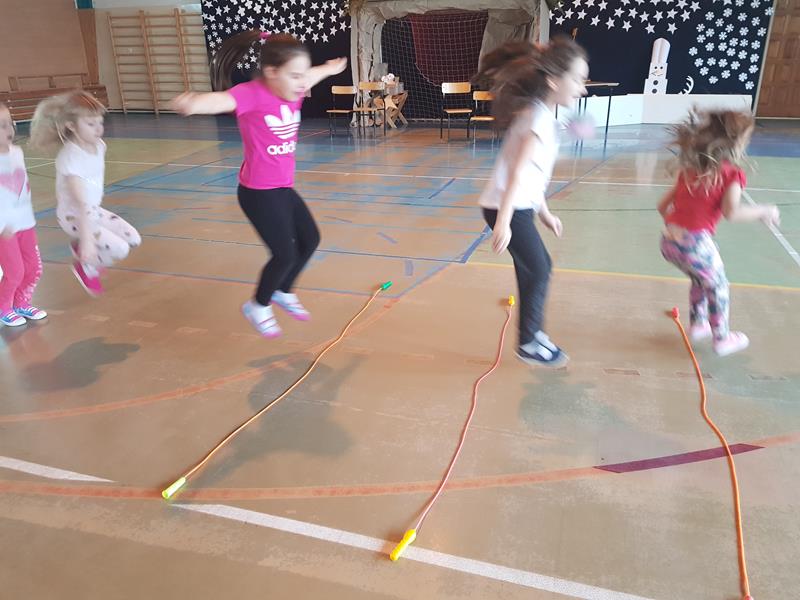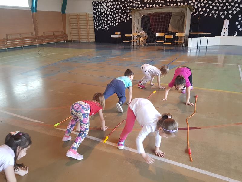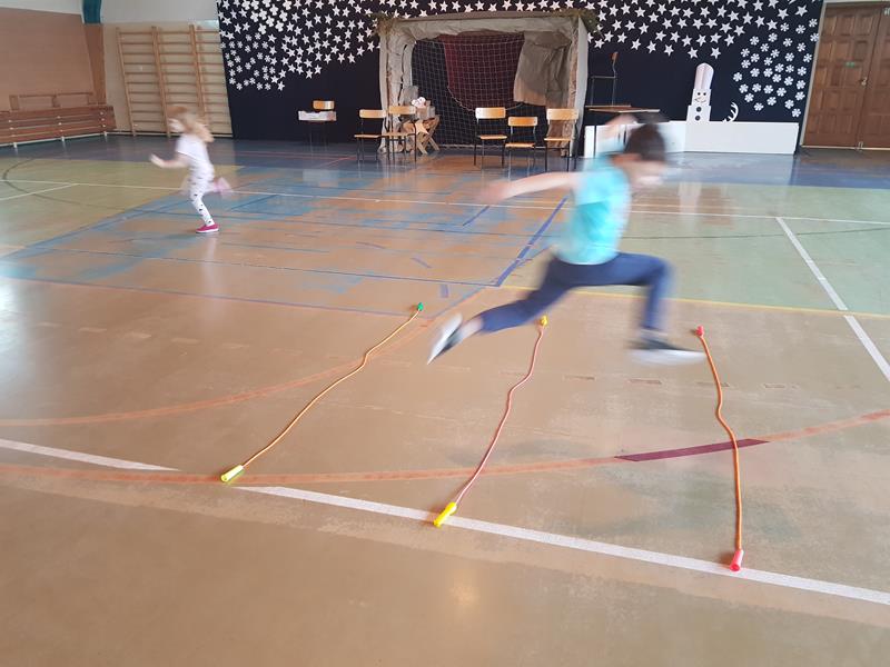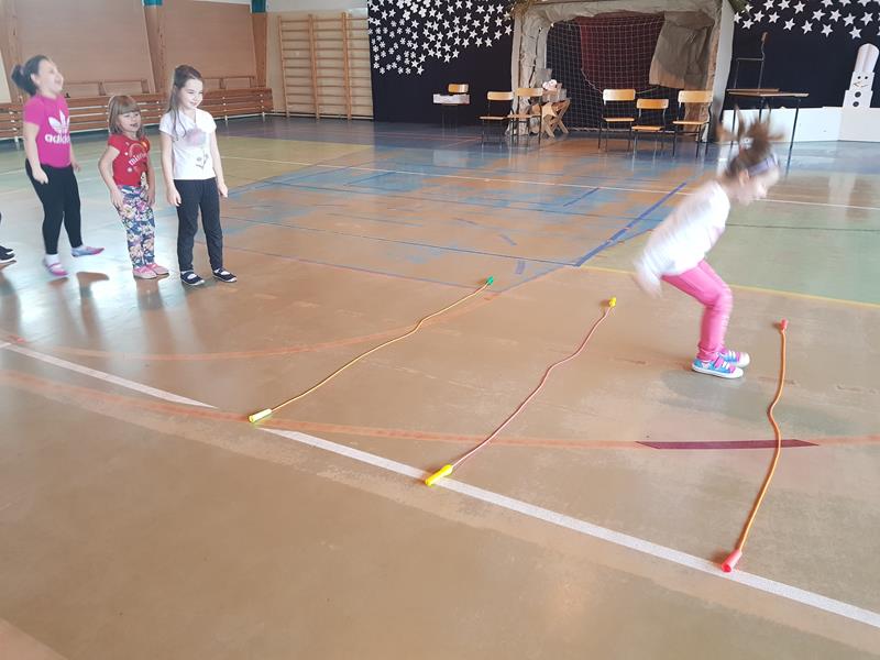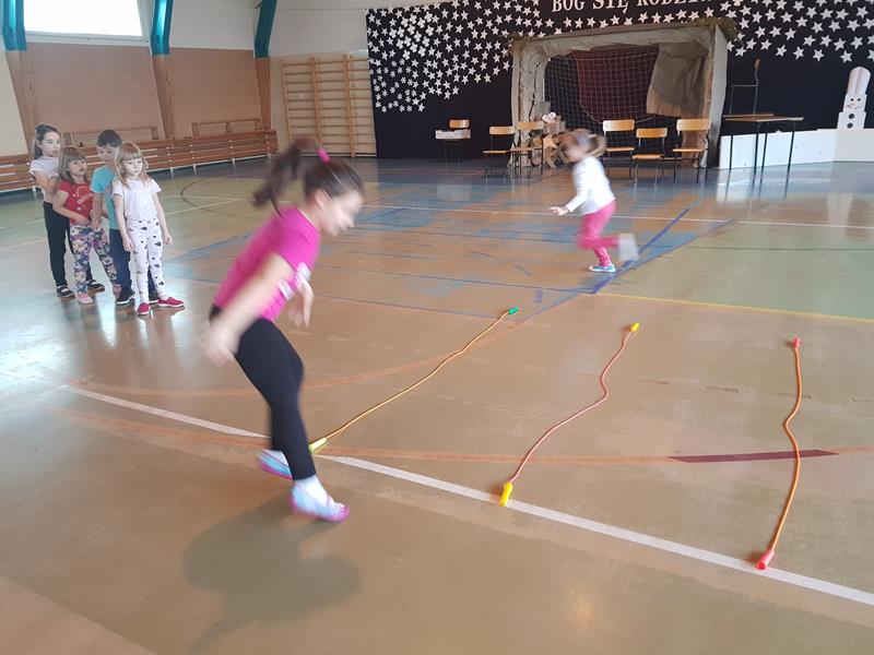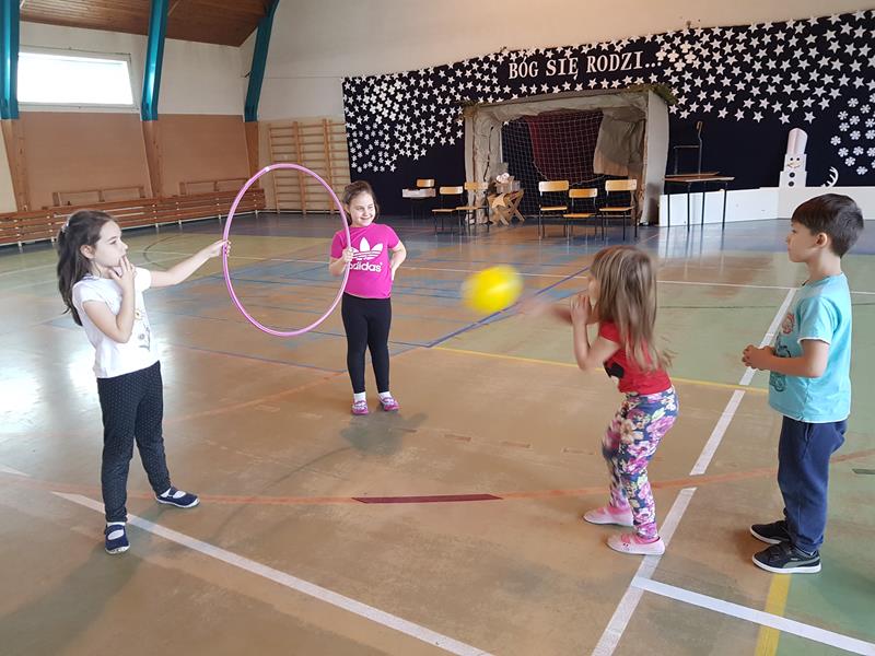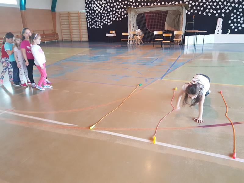 Oto kolejne zabawy na sportowo. Tym razem bawimy się pod hasłem: ,,Pomocnicy Świętego Mikołaja". Dzieci wcielają się w renifery Świętego Mikołaja. Ćwiczą, by być jak najlepiej przygotowane do czekających je zadań. Pokonują tory przeszkód, bokiem, przodem, skosami, slalomem, galopują, by jak najszybciej pędzić saniami. Praca w zaprzęgu dla Świętego Mikołaja nie należy do łatwych. Małe Elfy ćwiczą ładowanie prezentów i przerzucanie je przez komin. Dzieci uwielbiają takie zabawy.