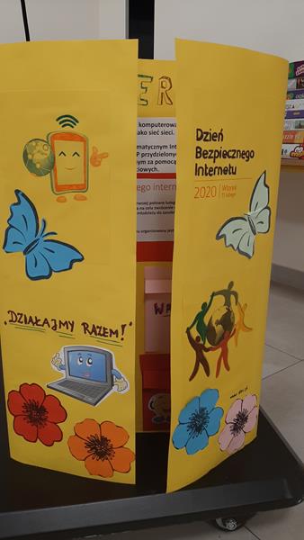 Na korytarzach naszej szkoły zostały rozwieszone plakaty promujące Dzień Bezpiecznego Internetu pt. „Działajmy Razem” oraz lapbook, który zawiera szereg wiedzy na temat bezpieczeństwa w Internecie, ale także wiele ciekawostek i dobry humor. W kąciku dla rodziców również zostały zamieszczone informacje i ulotki dotyczące zagadnienia: Jak rodzice mogą pomóc dzieciom dbać o bezpieczeństwo w sieci.