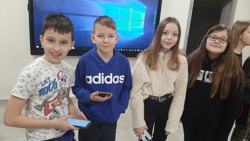 Na zakończenie uczniowie szkoły wzięli udział w quizach. W pierwszej kolejności skierowany był dla uczniów klas 0-II , którzy bardzo aktywnie wykazywali się swoją wiedzą o podstawowych zasadach zachowania się z Internecie. Uczniów klas starszych natomiast najbardziej zaciekawiła możliwość wzięcia udziału w teście z wykorzystaniem aplikacji Kahoot, dzięki której mogli udzielać odpowiedzi przez telefon. Reprezentanci klas z zaangażowaniem odpowiadali na pytania z quizu, przy tym dobrze się bawiąc.