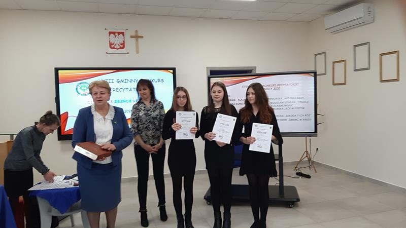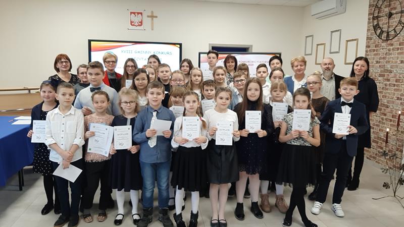 Wszystkich uczestników konkursu nagrodzono dyplomami za udział. Dyrektor szkoły wręczyła również podziękowania dla szkół za udział w XVIII Gminnym Konkursie Recytatorskim. Podziękowania trafiły także w ręce opiekunów młodych artystów.