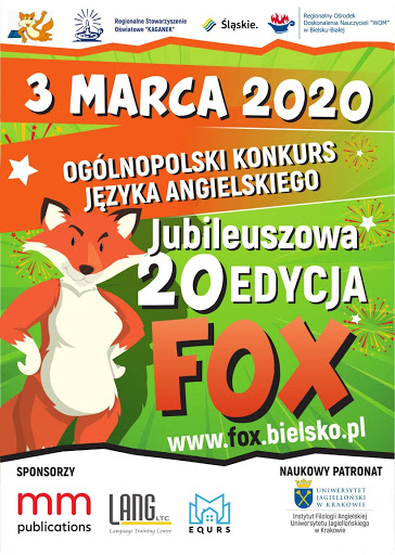 W dniu 3 marca 2020 r. trzech uczniów z naszej szkoły: Konrad Pająk (kl. 8), Michał Rusik (kl. 7) oraz Jakub Jóźwiak (kl. 8) wzięli udział w XX edycji Ogólnopolskiego Konkursu Języka Angielskiego ‘Fox’ . Konkurs został oparty na wiedzy gramatycznej, słownikowej oraz kulturoznawczej. Dodatkową trudnością konkursu było to, że przed jego przystąpieniem, uczniowie musieli przeczytać książkę w języku angielskim ‘Treasure Island’ .