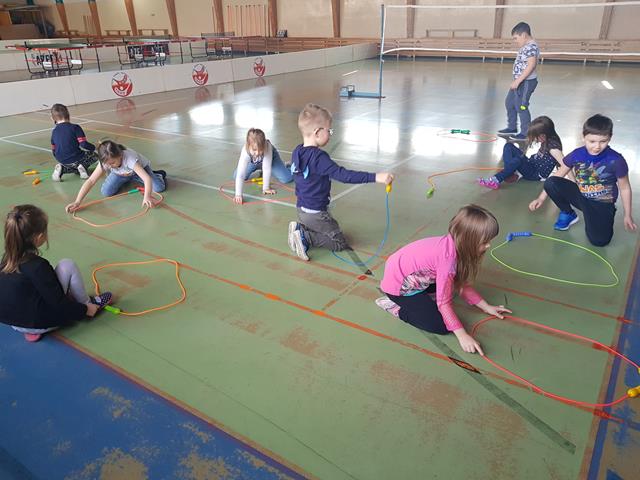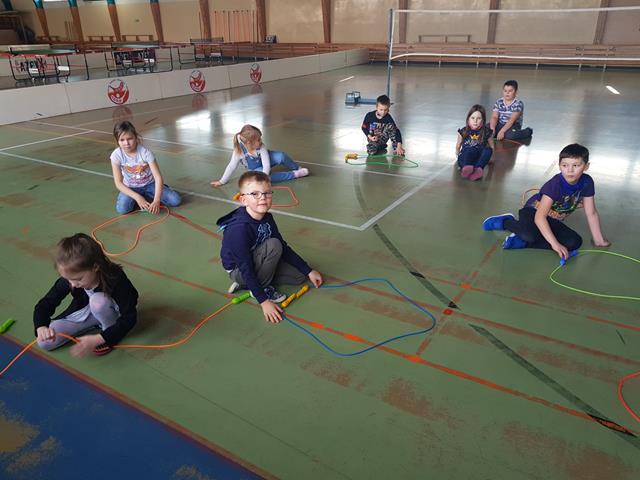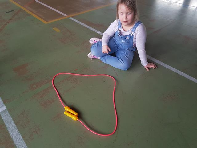 Pierwszym zadaniem dla dzieci było ułożenie ze skakanek znanych figur geometrycznych.