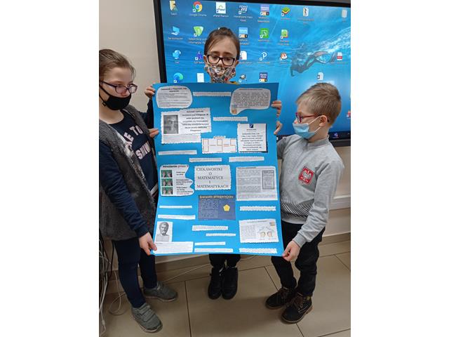 Uczniowie przygotowali plakaty na temat „Ciekawostki matematyczne i o matematykach”.