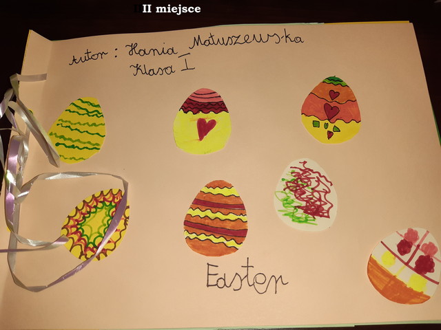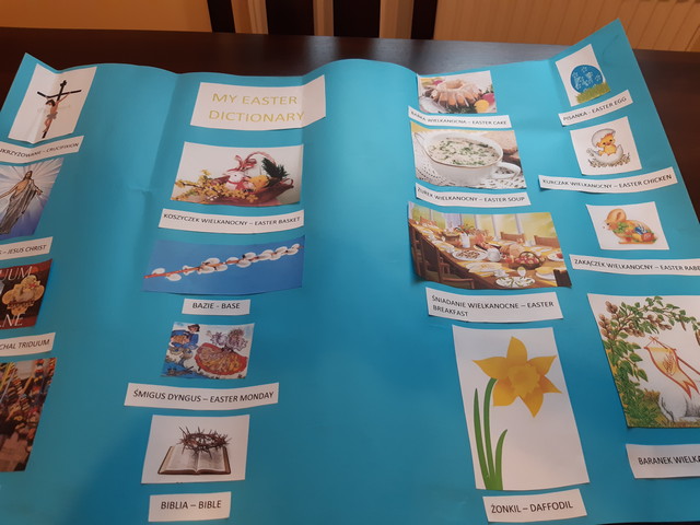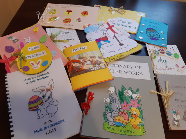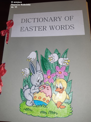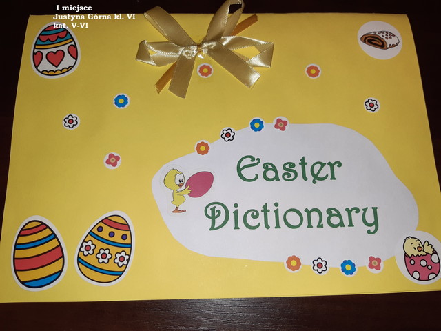 W dniach od 15.03-30.03. uczniowie klas I-III oraz V-VI mieli możliwość wzięcia udziału w Szkolnym Konkursie Języka Angielskiego ‘My Easter Dictionary’. Konkurs polegał na wykonaniu pracy plastyczno-językowej w formie słowniczka obrazkowego w języku angielskim związanego ze Świętami Wielkanocnymi. Został on podzielony na dwie kategorie: kl. I-III oraz V-VI.