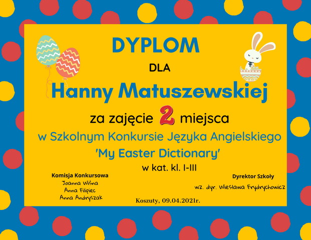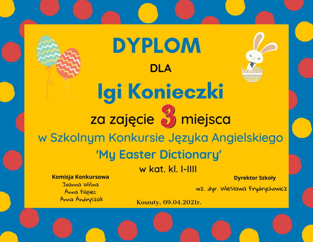 SZKOLNY KONKURS JĘZYKA ANGIELSKIEGO ‘MY EASTER DICTIONARY’ ROZSTRZYGNIĘTY