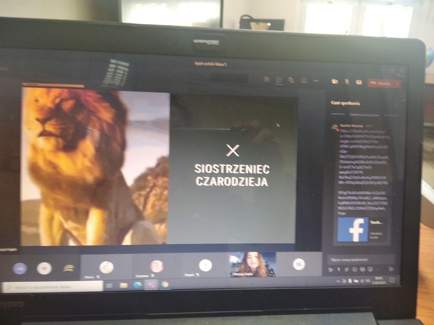 21 kwietnia br. na zajęciach zdalnych z języka polskiego, klasę piątą odwiedził wyjątkowy gość. Była mim studentka trzeciego roku anglistyki - Patrycja Gajda. Jakie były przyczyny tego spotkania? Odpowiedz jest dość prosta, Pani Patrycja piszę pracę licencjacką na temat powieści Clive Staples'a Lewis”a „Opowieści z Narnii” była to ostatnia lektura, jaką omawiali na lekcji języka polskiego uczniowie klasy piątej. Ta przepiękna, przepełniona magią opowieść o czwórce rodzeństwa, bardzo podobała się dzieciom. Dlatego też Pani Sylwia Sobczak oraz Pani Kamilla Woźniak postanowiły zorganizować spotkanie z osobą, która na temat wspomnianej powieści wie wszystko.