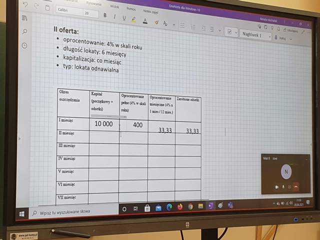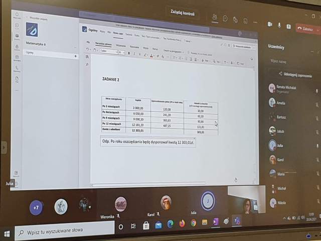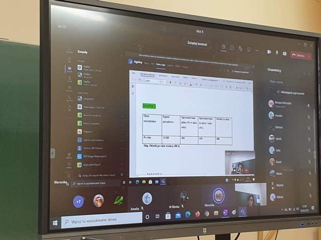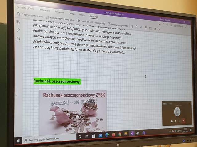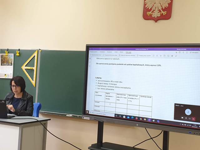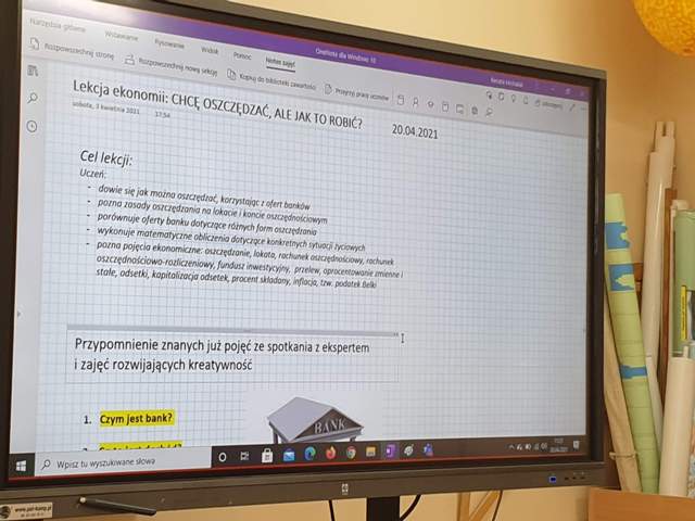 W dniu 20 kwietnia uczniowie klasy 8 i 7 uczestniczyli w lekcji on-line łączącej ekonomię z matematyką z aspektami życia codziennego dotyczącymi oszczędzania w banku. Zajęcia odbyły się w ramach realizacji ogólnopolskiego programu Złote Szkoły NBP. Lekcja miała charakter otwarty, uczestniczyli w niej również dyrektor szkoły i nauczyciele.