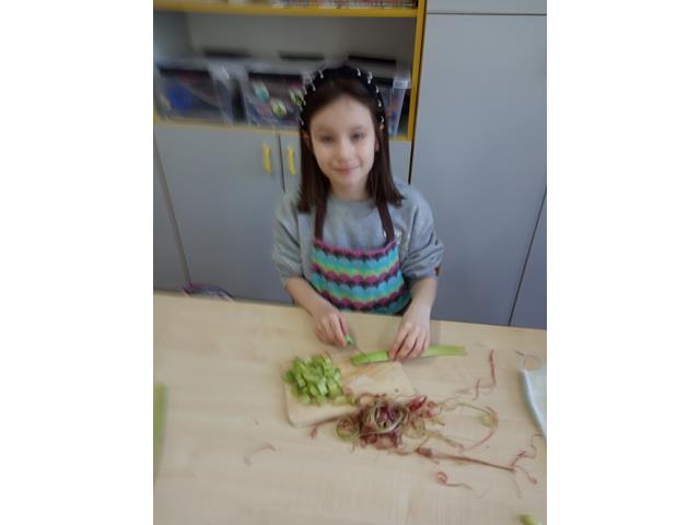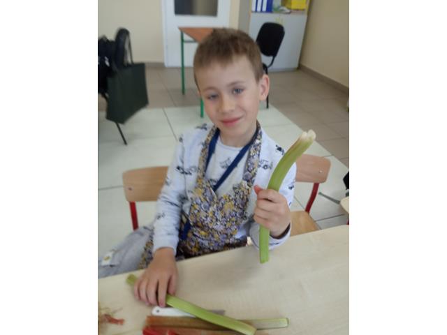 5 maja zapachniało w naszej szkole. Okazją do fascynujących eksperymentów kulinarnych stał się rabarbar, którego pierwsze zbiory przynieśli uczniowie klasy II ze szkolnego ogródka.