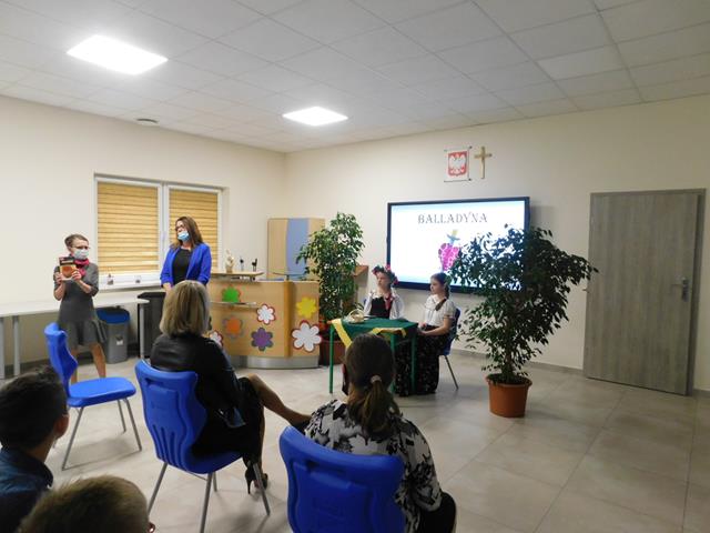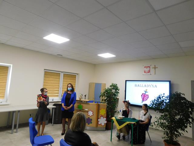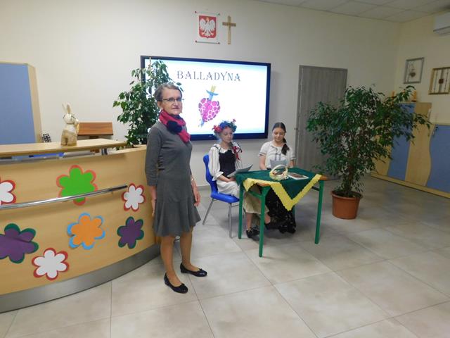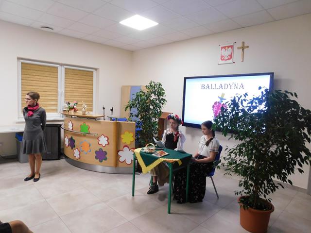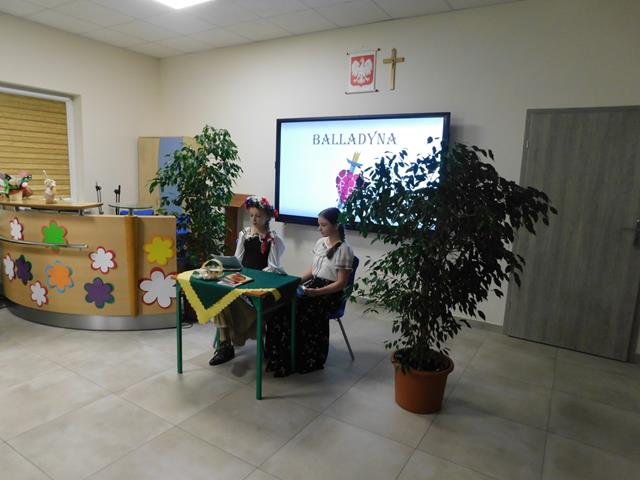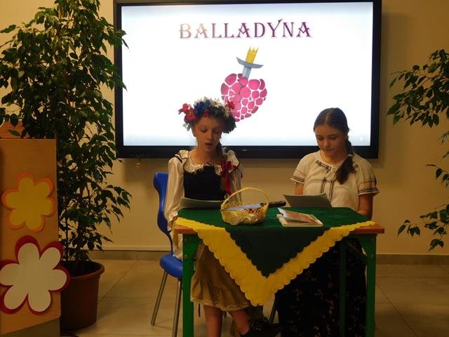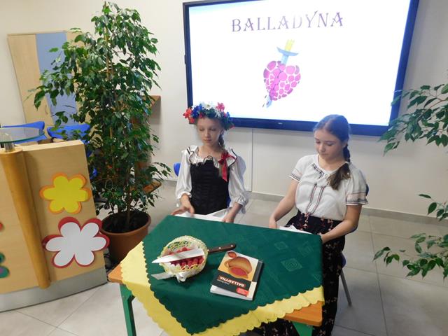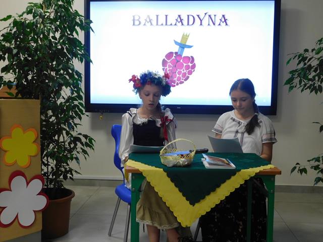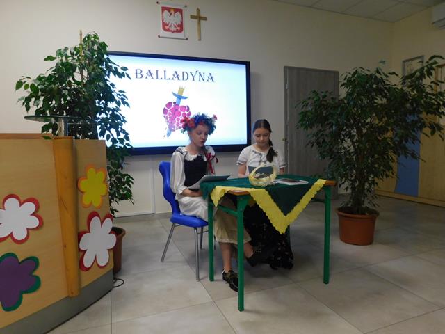 W naszej szkole18 maja przeczytaliśmy fragment aktu II, sceny I „Balladyny”. W rolę Balladyny wcieliła się Maja Łaskarzewska, Alinę zaś zagrała Maria Gorzelańczyk. Uczennice klasy VII przekonująco oddały dramaturgię wybranego fragmentu tragedii, ich występ nagrodziliśmy gromkimi brawami.