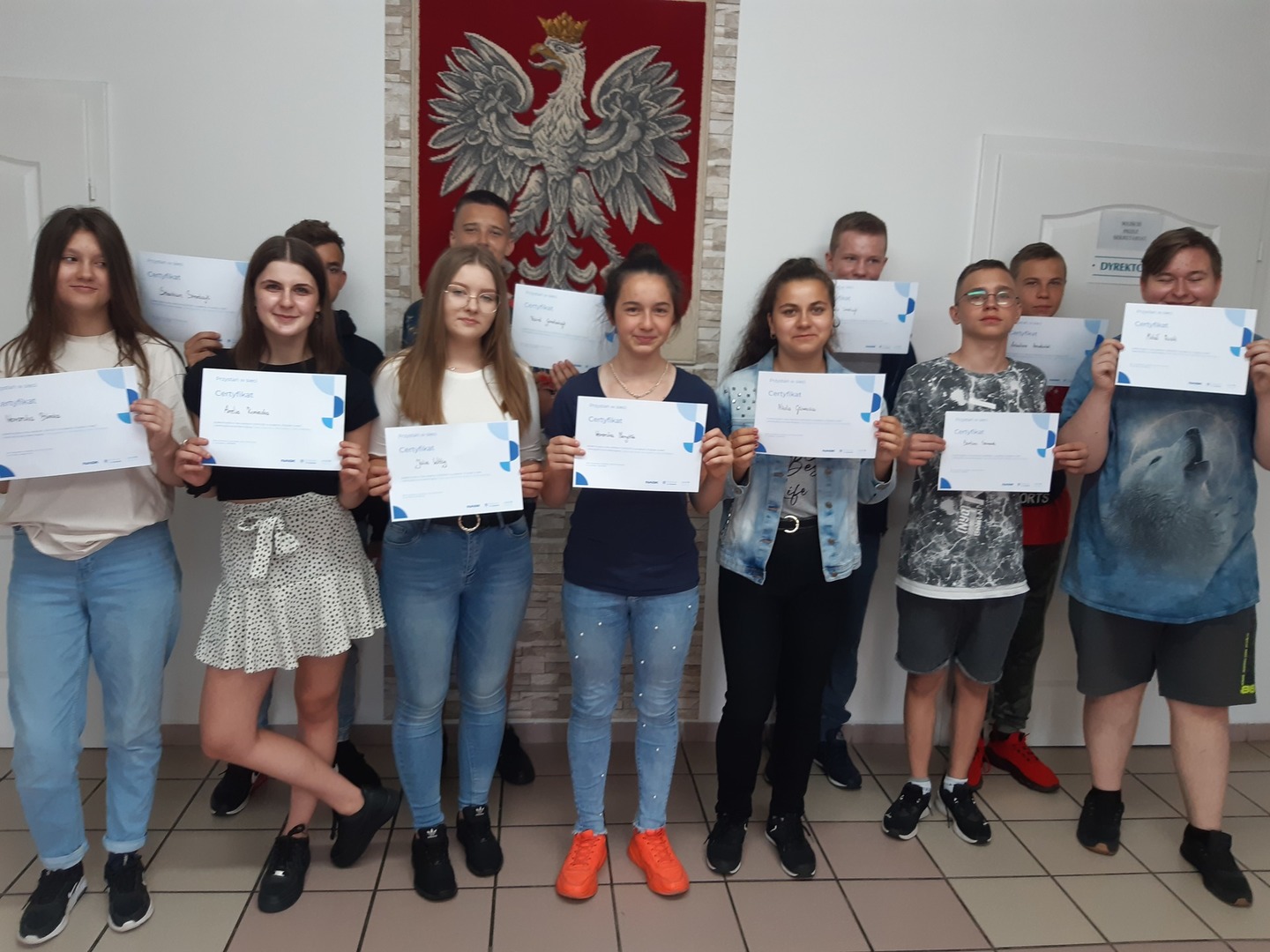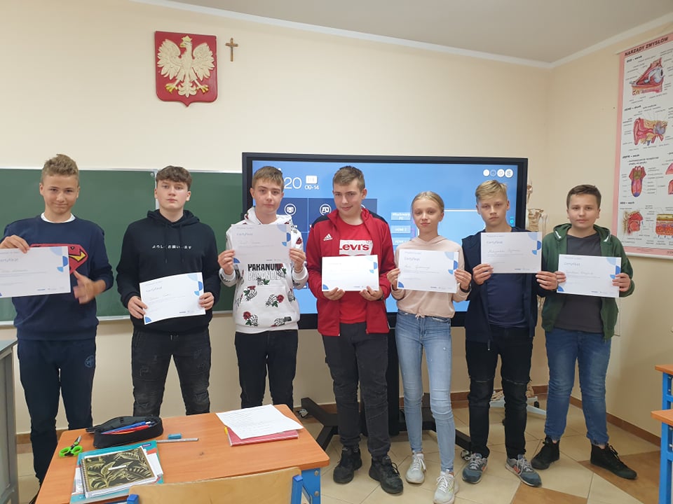 Szkolnymi koordynatorami projektu były pani Joanna Wiśna oraz pani Anna Filipiec, które dzięki specjalnie zaprojektowanej platformie e-learningowej poszerzyły swoją wiedzę w obszarach związanych z bezpieczeństwem online. Kursy zostały podzielone na następujące moduły tematyczne: prywatność w sieci; cyberprzemoc; cyberzagrożenia; szkodliwe i nielegalne treści; cyfrowe ślady i reputacja online; fałszywe informacje. Po zrealizowaniu kursów i uzyskaniu pozytywnego wyniku w teście sprawdzającym wiedzę, obie panie udostępniły wybrane moduły tematyczne wszystkim uczniom z kl. 7 i 8, którzy po zdobyciu wiedzy na temat bezpieczeństwa w sieci również przystąpili do testu sprawdzającego wiedzę oraz uzyskali pozytywny wynik, otrzymując certyfikaty ukończenia kursu.
