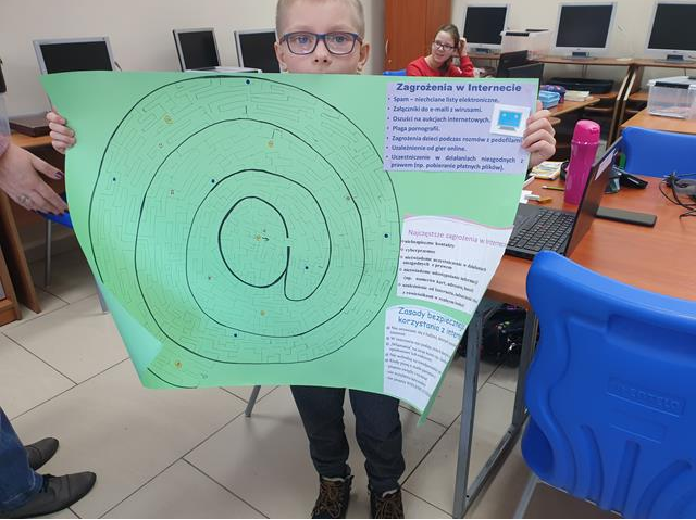 W klasach 0-III dzieci poznały historię Necia, podstawowe informacje na temat Internetu i bezpiecznego korzystania z niego. Uczestniczyły również w grach i zabawach związanych z bohaterem Neciem, z wykorzystaniem Internetu i sprzętu komputerowego. Uczniowie zapoznali się także z kreskówkami serii -„Owce w sieci”, których celem jest edukacja na temat zagrożeń związanych z korzystaniem przez dzieci z Internetu, telefonów komórkowych i innych nowych technologii. Uczniowie klasy VI przygotowali prezentację na temat – Bezpieczeństwa w sieci. Wychowawcy klas V-VIII przeprowadzili podczas zajęć pogadanki o zasadach zachowania w Internecie oraz bezpiecznego korzystania z niego, wykorzystując w tym celu wcześniej wspomnianą prezentację. Po zakończonej prelekcji uczniowie wzięli udział w quizach, z wykorzystaniem aplikacji kahoot lub strony eduelo. Młodzież z zaangażowaniem udzielała odpowiedzi na pytania z quizu, przy tym dobrze się bawiąc.