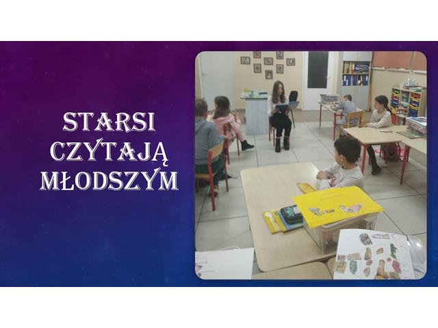 We wtorek uczniowie odpoczęli od kartkówek i nie musieli się martwić o sprawdzanie prac domowych czy odpowiedź ustną. W tym dniu funkcjonowała poczta szkolna, do której wrzucano kartki z miłymi słowami czy podziękowaniami dla swoich kolegów, koleżanek czy pracowników szkoły. Kartki te, jak na każdej poczcie, trafiły do swoich adresatów, sprawiając im dużo radości. W środę od samego rana uczennice z klasy VII postanowiły poczytać swoim młodszym kolegom. Jednak popis swoich umiejętności aktorskich i czytelniczych zaprezentowano podczas Narodowego czytania. Było to okazja do integracji całej społeczności szkolnej, zarówno uczniów, nauczycieli, Pani Dyrektor jak i rodziców. Wydarzenie to odbyło się w niesamowitej scenerii. Jak na dobrych aktorów przystało, nie zabrakło rekwizytów czy odpowiednich strojów. Podczas przerw i zajęć natomiast odbywały zabawy przy lego, grach np. szachach. W tym tygodniu dzieci mogły również korzystać z kiermaszu książek. W czwartek uczniowie wcielili się w role nauczycieli, którzy z kolei postanowili przypomnieć sobie jak to jest być znów uczniem. Wybrani wychowankowie poprowadzili zajęcia z różnych przedmiotów, wywołując nieraz do odpowiedzi nauczyciela. W tym dniu Pani Dyrektor oraz pracownicy szkoły przynieśli swoje zdjęcia z dzieciństwa. Uczniowie podczas wystawy zdjęć próbowali rozpoznać swoich opiekunów i Dyrektora. Nie było to łatwe zadanie. Najwięcej punktów udało się zdobyć klasie VII.