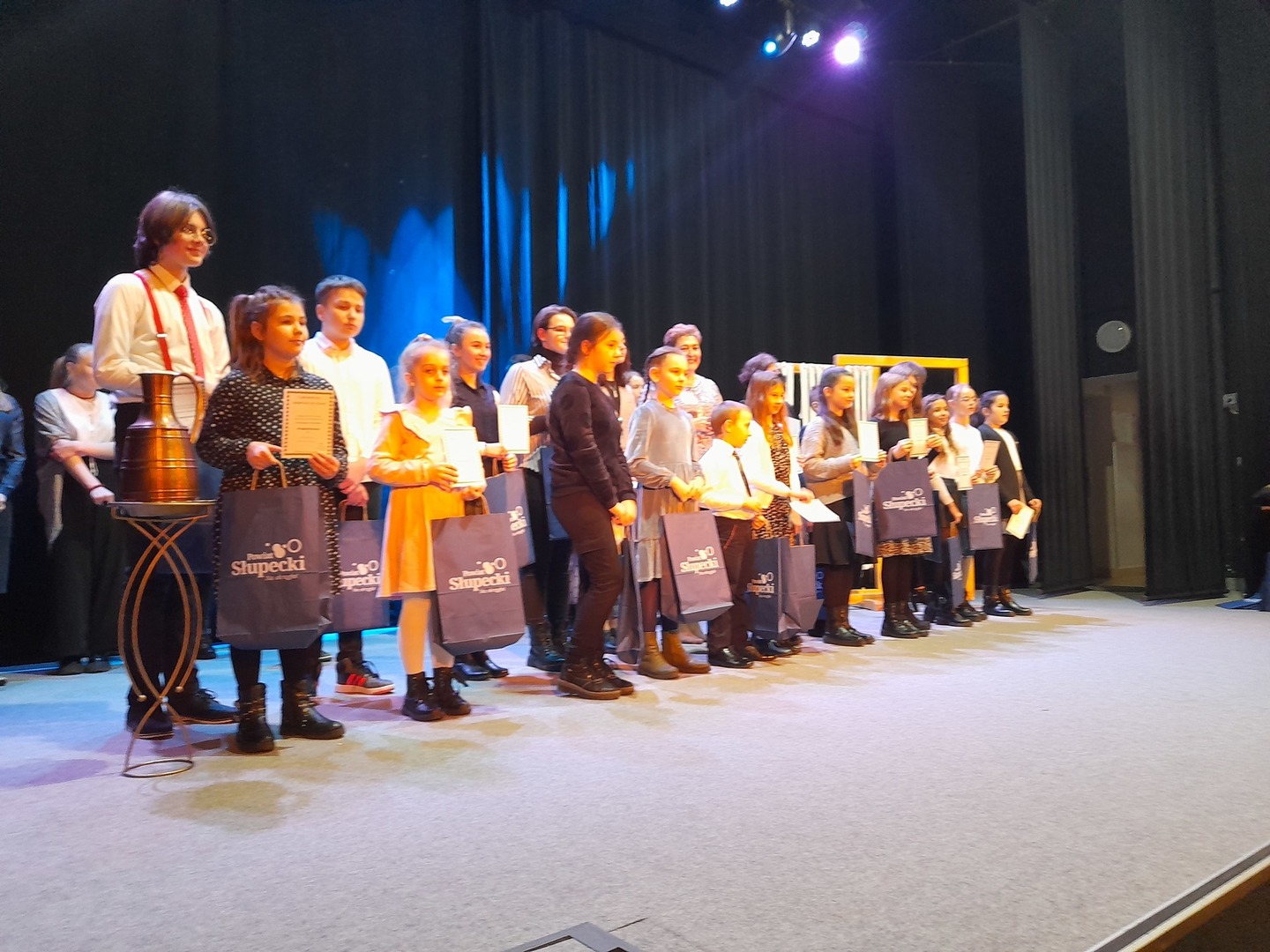 17 lutego 2022 roku dwoje uczniów nagrodzonych w Gminnym Konkursie Recytatorskim: Jan Strugliński z klasy III i Tymoteusz Krajewski z klasy VIII reprezentowało naszą szkołę w kolejnym etapie konkursu ,,Dźwięki przewracam, nicuję barwy …”, który odbył się w Miejskim Domu Kultury w Słupcy.