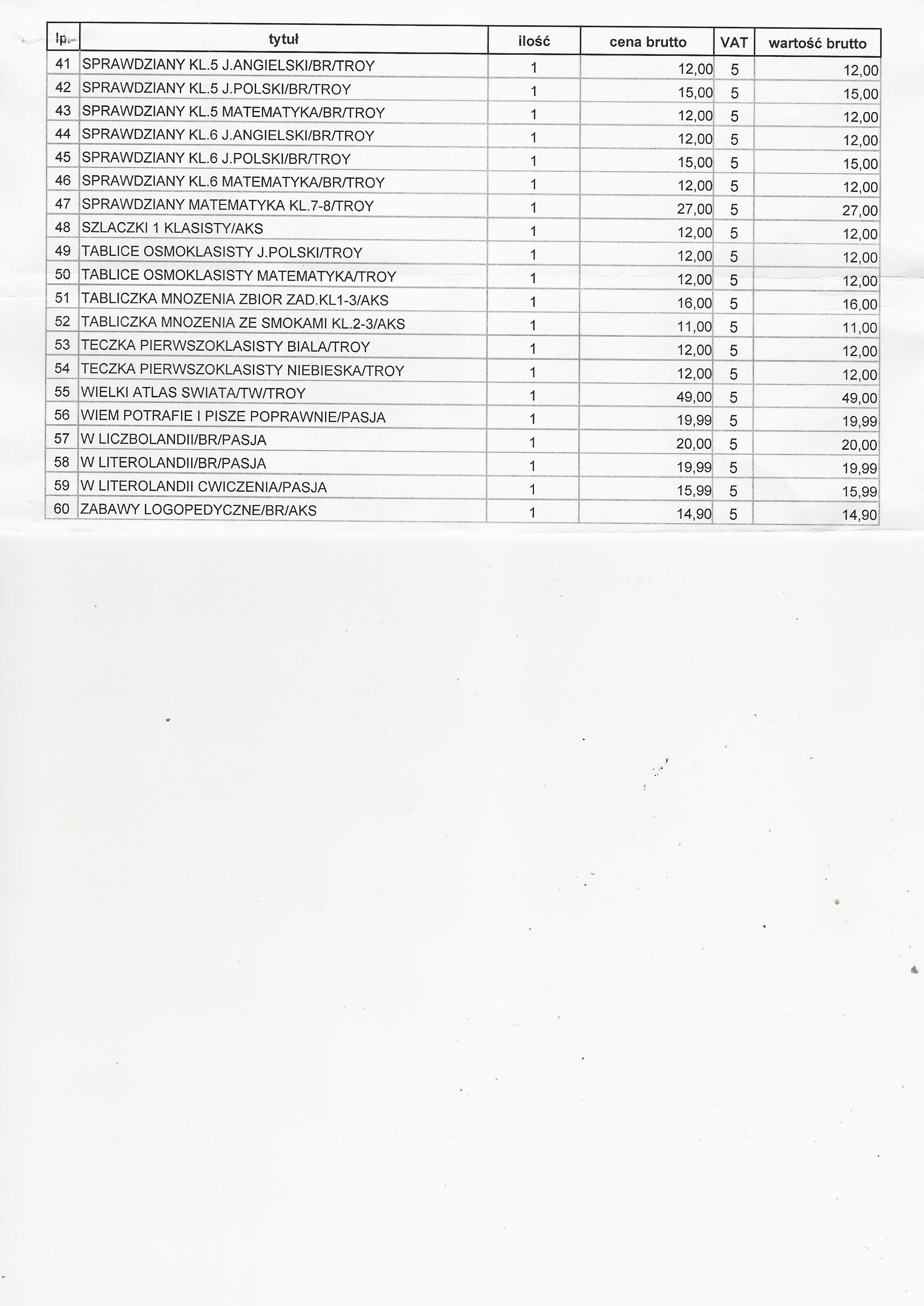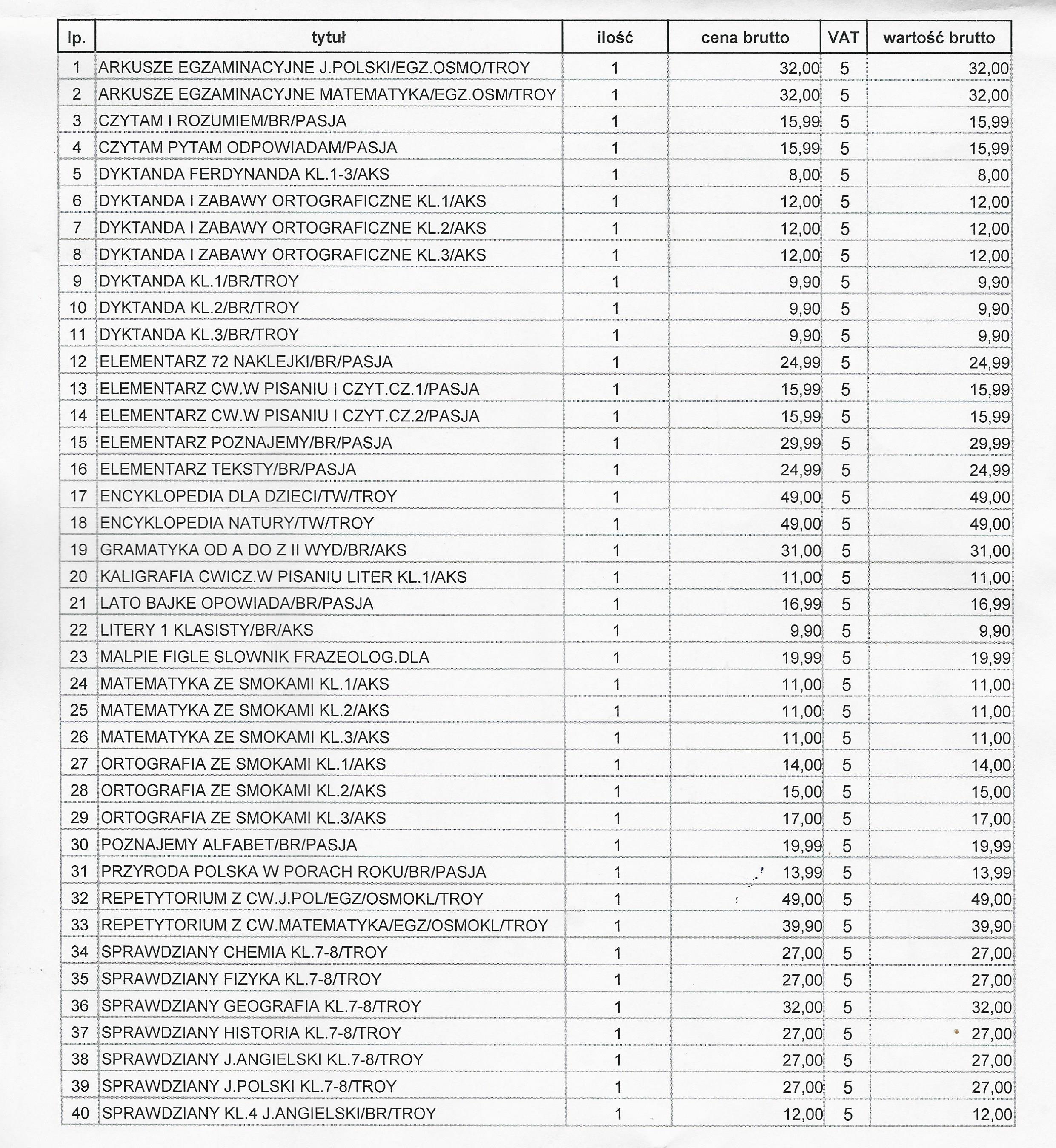 Piniżej przedstawiamy cennik książek dla dzieci, które możecie Państwo kupić w naszej bibliotece