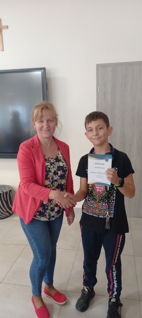 Dnia 17 września 2022 r. nastąpiło podsumowanie zabawy, którą zorganizował Samorząd Uczniowski wraz z opiekunami. Polegała ona na dokończeniu zdania: „Ona to mucha, on to….”. Do skrzynki na odpowiedzi trafiło wiele ciekawych kartek z kreatywnymi odpowiedziami. Przewodnicząca Samorządu Uczniowskiego wraz z opiekunami wręczyła w świetlicy szkolnej pamiątkowe dyplomy za najbardziej pomysłowe dokończenie zdania. I miejsce zajęła Maria Pilarczyk, kl. VII, II miejsce Julia Włodarczyk, kl. V, III Miejsce Dominika Waszak kl. VII, oraz wyróżnienie Paweł Strzelczyk, kl. VII. Dziękujemy wszystkim za udział w zabawie i zapraszamy do kolejnej zabawy przygotowanej na miesiąc październik przez Samorząd Uczniowski.