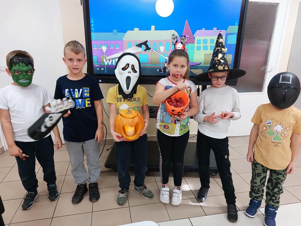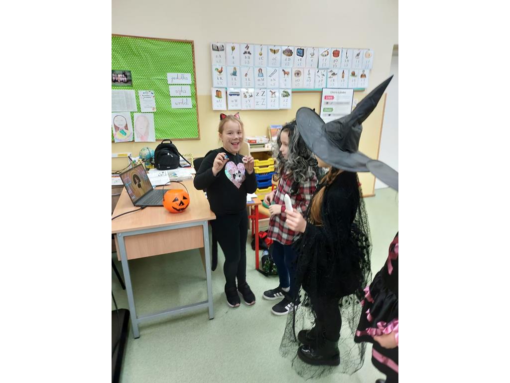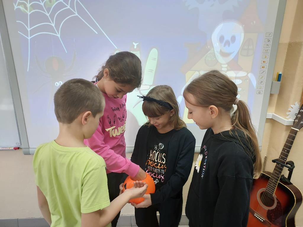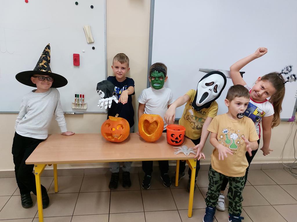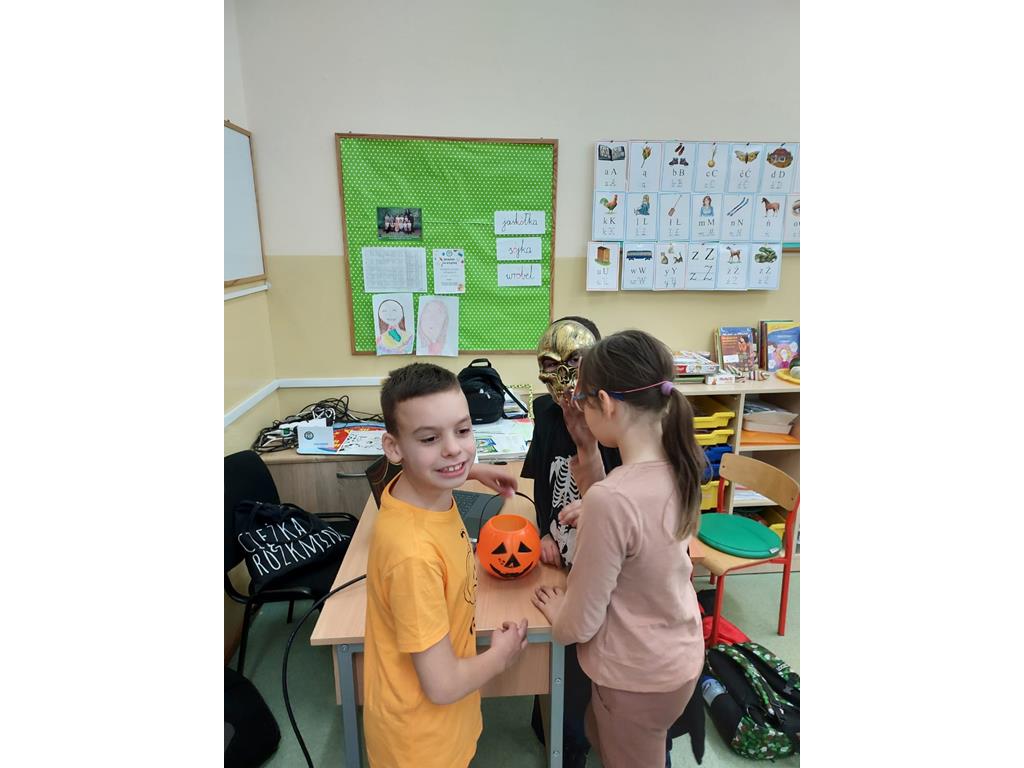 W ostatnim tygodniu października w naszej szkole uczniowie klas 0- III uczestniczyli w lekcjach kulturowych dotyczących ,,Halloween” prowadzonych przez p. A. Filipec oraz p. J. Wiśną. Dzieci poznały historię anglosaskiego święta oraz słownictwo z nim związane. Uczniowie brali udział w wielu zabawach oraz grach językowych. Nie zabrakło wspólnych śpiewów czy tańców. Nasi najmłodsi świetnie się bawili, wcielając się w mroczne postaci, czy też oglądając krótkie, zabawne filmiki dotyczące ,,Halloween”. Na zakończenie lekcji, uczniowie otrzymali słodkie upominki w myśl angielskiego hasła ,, TRICK OR TREAT” / ,,CUKIEREK ALBO PSIKUS”.