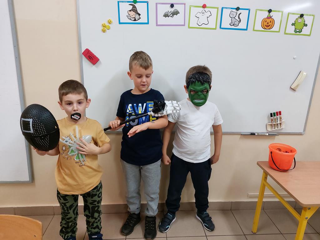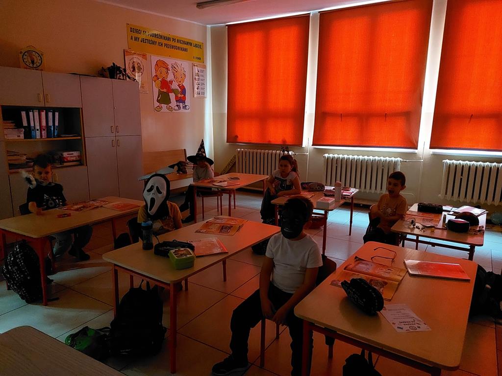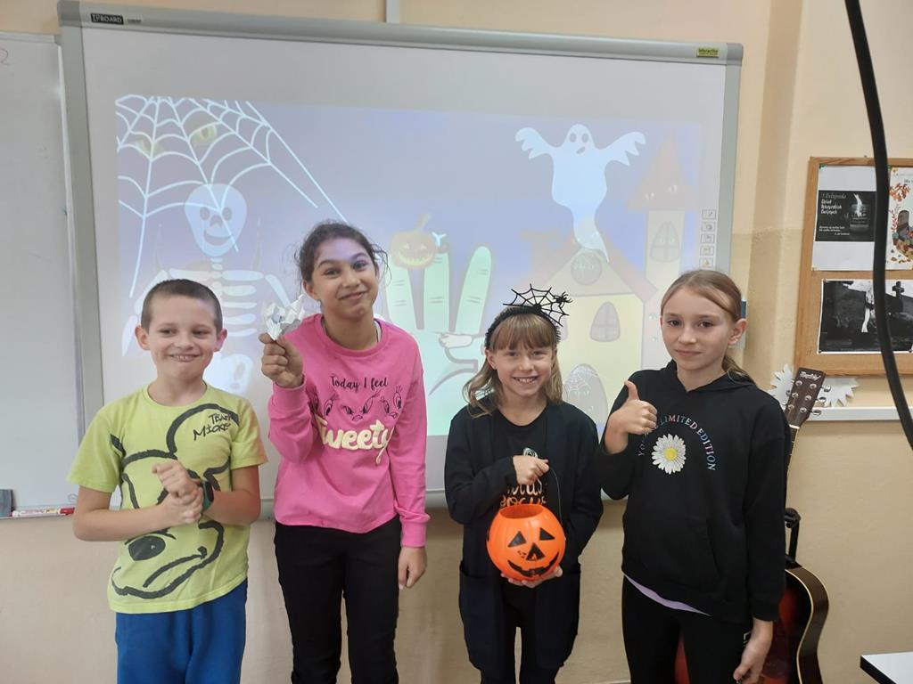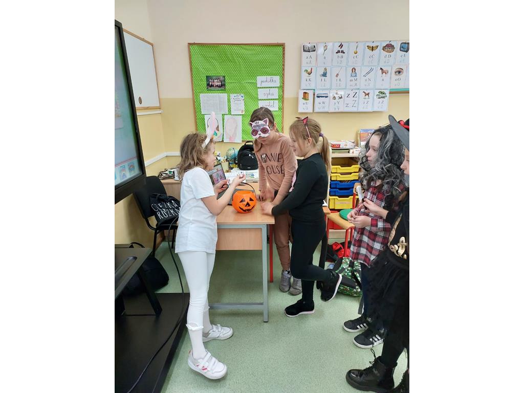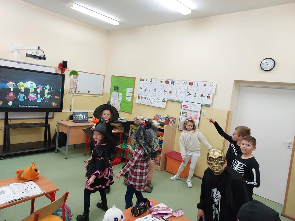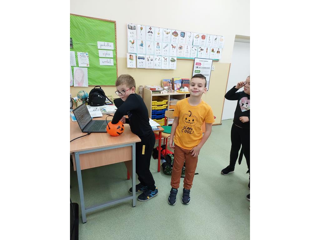 W ostatnim tygodniu października w naszej szkole uczniowie klas 0- III uczestniczyli w lekcjach kulturowych dotyczących ,,Halloween” prowadzonych przez p. A. Filipec oraz p. J. Wiśną. Dzieci poznały historię anglosaskiego święta oraz słownictwo z nim związane. Uczniowie brali udział w wielu zabawach oraz grach językowych. Nie zabrakło wspólnych śpiewów czy tańców. Nasi najmłodsi świetnie się bawili, wcielając się w mroczne postaci, czy też oglądając krótkie, zabawne filmiki dotyczące ,,Halloween”. Na zakończenie lekcji, uczniowie otrzymali słodkie upominki w myśl angielskiego hasła ,, TRICK OR TREAT” / ,,CUKIEREK ALBO PSIKUS”.
