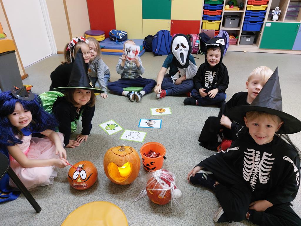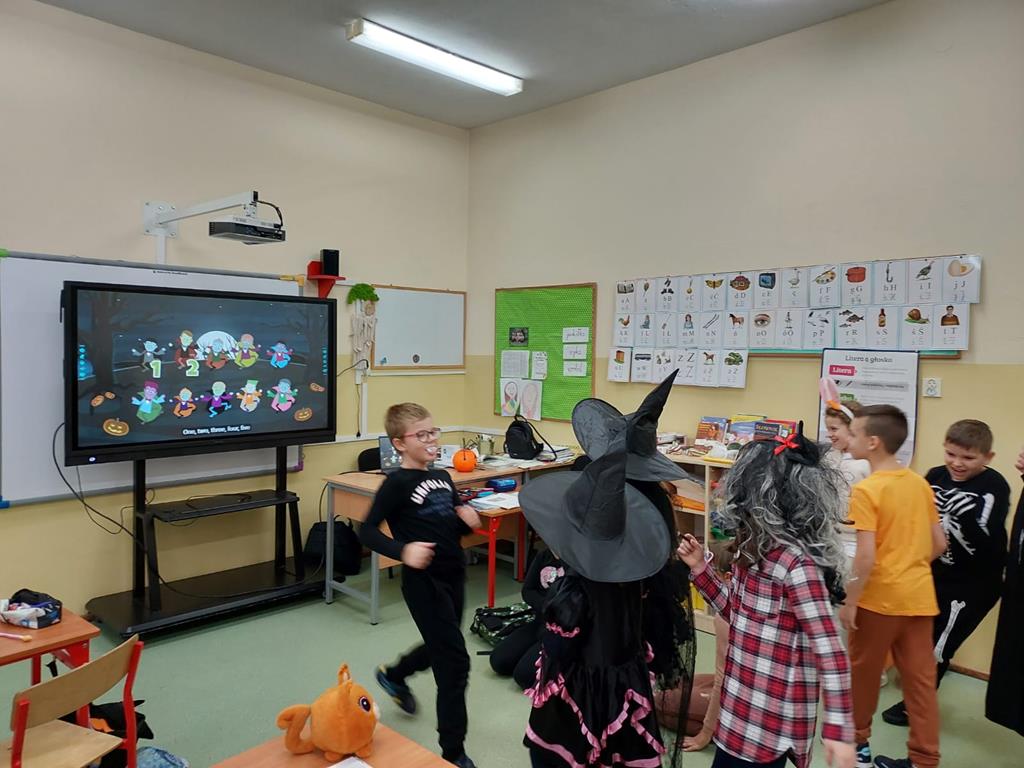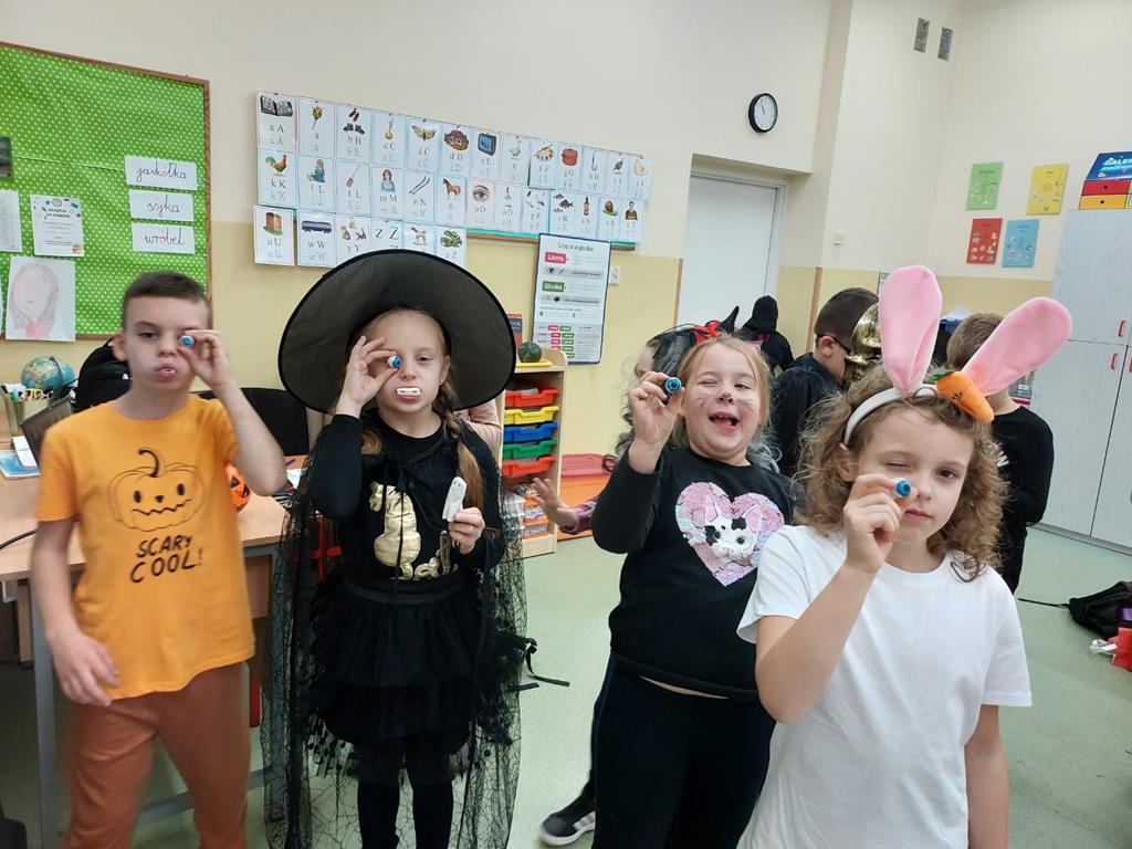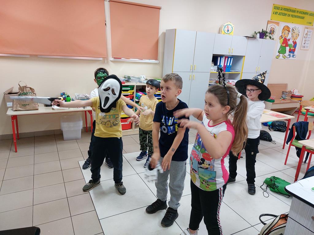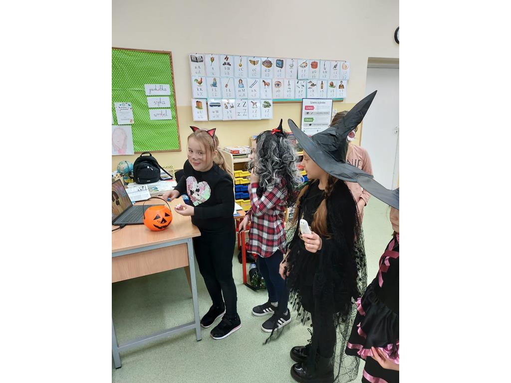 W ostatnim tygodniu października w naszej szkole uczniowie klas 0- III uczestniczyli w lekcjach kulturowych dotyczących ,,Halloween” prowadzonych przez p. A. Filipec oraz p. J. Wiśną. Dzieci poznały historię anglosaskiego święta oraz słownictwo z nim związane. Uczniowie brali udział w wielu zabawach oraz grach językowych. Nie zabrakło wspólnych śpiewów czy tańców. Nasi najmłodsi świetnie się bawili, wcielając się w mroczne postaci, czy też oglądając krótkie, zabawne filmiki dotyczące ,,Halloween”. Na zakończenie lekcji, uczniowie otrzymali słodkie upominki w myśl angielskiego hasła ,, TRICK OR TREAT” / ,,CUKIEREK ALBO PSIKUS”.