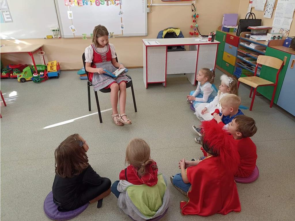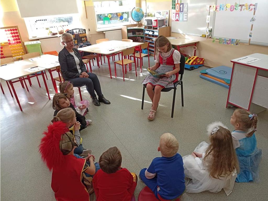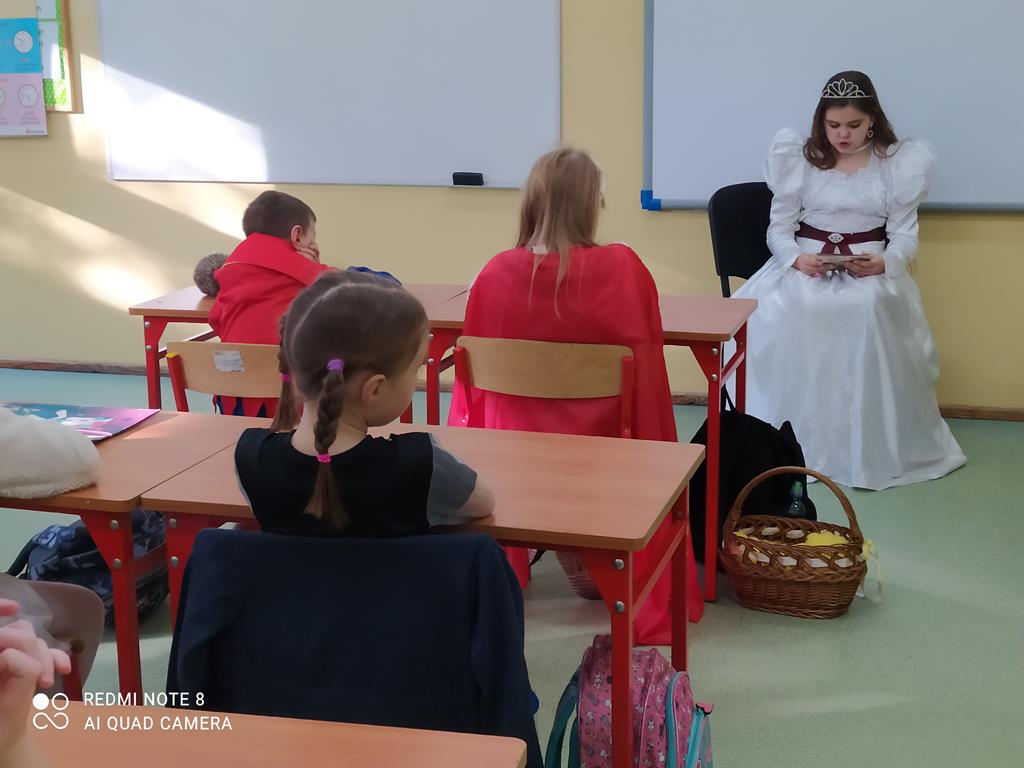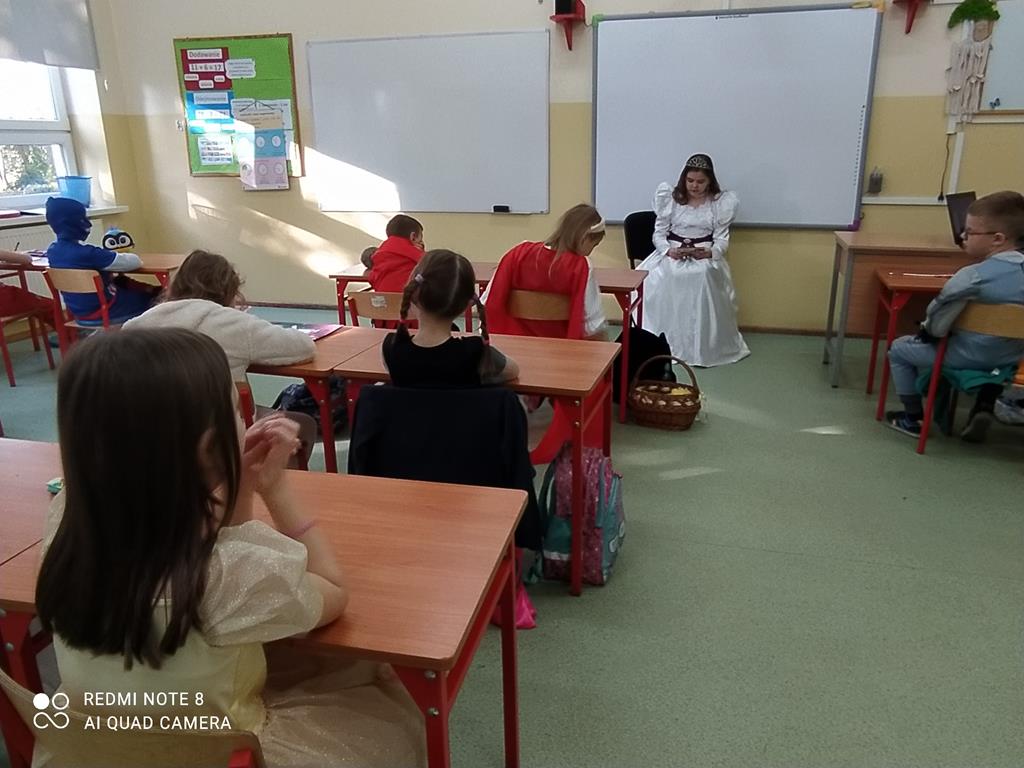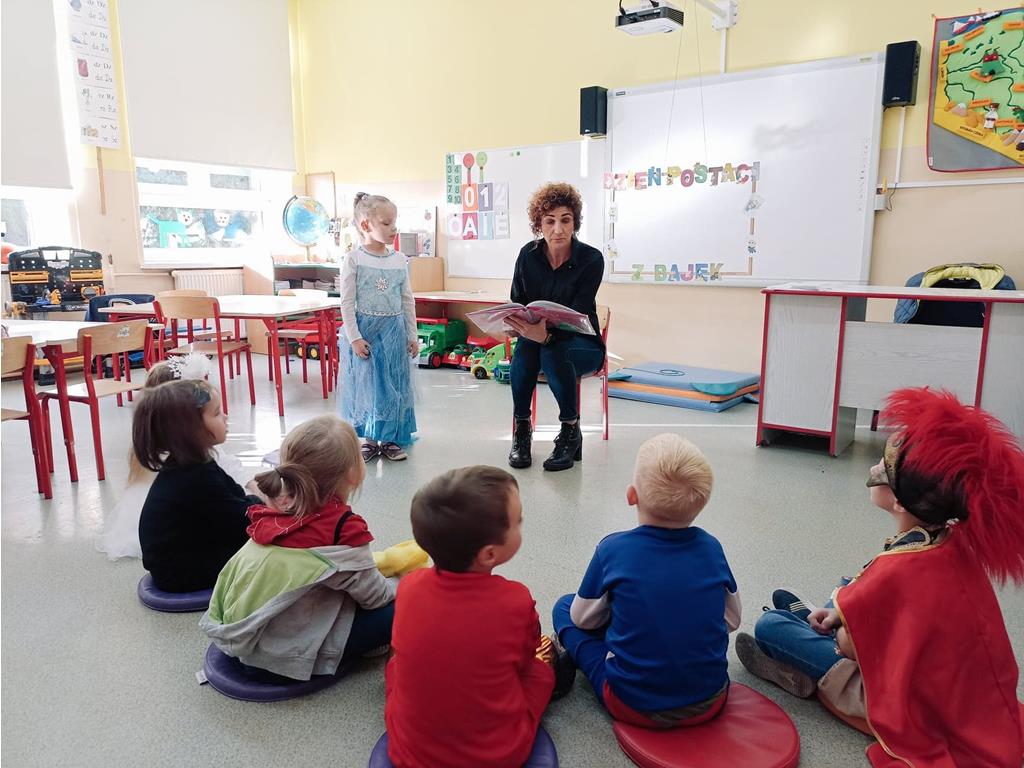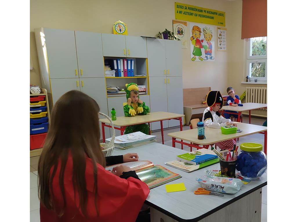 Dzień ten to świetna okazja aby przybliżyć dzieciom bajki, które oglądane i słuchane były dawniej, a dziś są nieco zapomniane. To czas gdy można porozmawiać z dziećmi na temat ich ulubionych bajek. W tym dniu dzieci kl 0 - lll przyszły przebrane za ulubione postacie z bajek. W oddziale przedszkolnym odbyły się zajęcia prowadzone przez Panią Dyrektor Monikę Paszek i bibliotekarkę Magdalenę Kusiołek z Gminnej Biblioteki Publicznej w Cieninie Zabornym. Zabawom i tańcom nie było końca. Dzieci tworzyły również swój własny teatrzyk bajkowy. Przy współpracy z aktywem bibliotecznym naszej szkoły i Samorządem Uczniowskim uczniowie klas starszych przebrani za bajkowe postacie czytali bajki swoim młodszym kolegom .