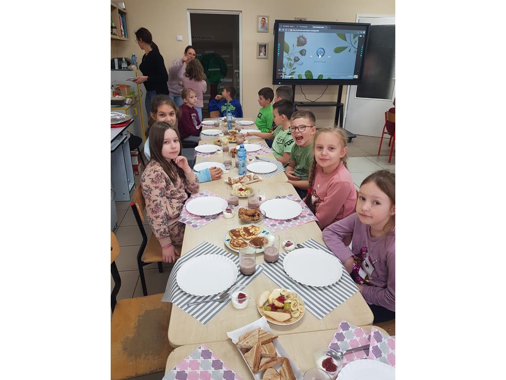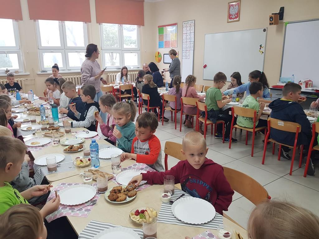 8 listopada w kalendarzu obchodzimy Międzynarodowy Dzień Zdrowego Śniadania. W tym roku w ramach tego święta 15 listopada wychowawcy klas 0 – III ze swoimi uczniami przy wsparciu Rodziców przygotowali śniadanie złożone wyłącznie ze zdrowych produktów. Klasa 0 przygotowała kakao i jogurt naturalny z owocami. Klasa I wykonała ciasteczka owsiane z bakaliami. Klasa II pancakes'y z konfiturą, a klasa III – sandwicze z wieloziarnistego pieczywa.