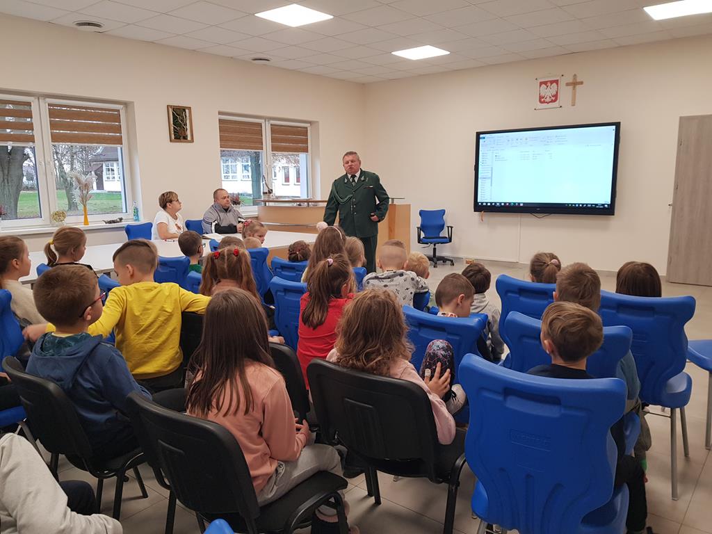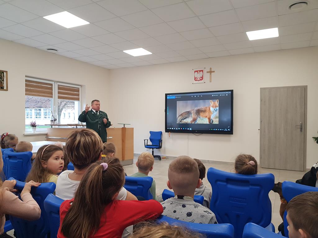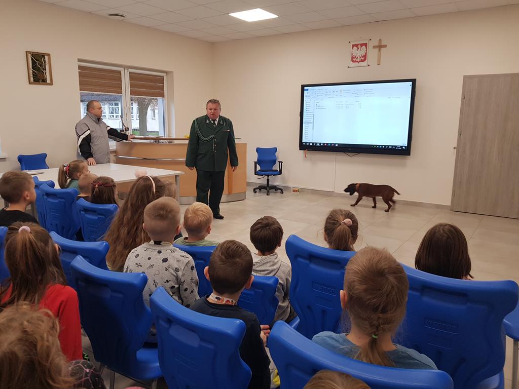 Podczas spotkania uczniowie dowiedzieli się, że głównym zadaniem myśliwych jest dbanie o zwierzęta zwłaszcza w okresie zimy. Myśliwy opowiadał o lesie i jego mieszkańcach. Człowiek jest tylko gościem w lesie i musi szanować panujące tam zwyczaje. Podczas spotkania uczniowie dowiedzieli się o zwyczajach wybranych zwierząt leśnych.