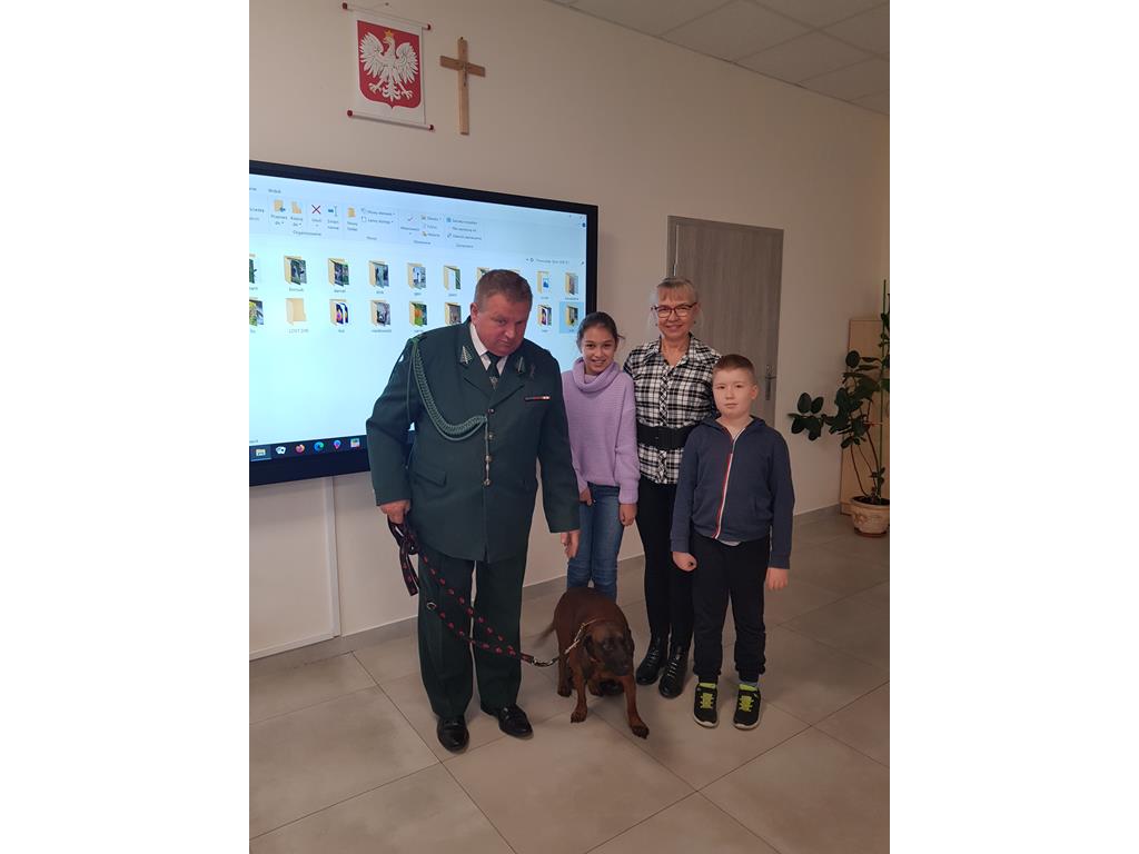 18 listopada 2022r. naszą szkołę odwiedził myśliwy z Koła Łowieckiego ,,Cyranka".