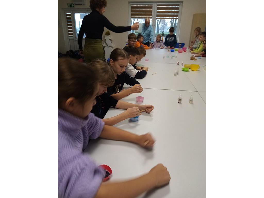 W świetlicy szkolnej zapachniało cynamonem , zielonym jabłuszkiem , pomarańczą . Te cudowne zapachy świąteczne wydobywały się podczas trwania warsztatów mydlarskich ,które miały miejsce 5 grudnia w naszej szkole .Uczniowie klas 3, 4 i 5 mieli możliwość wykonania mydełka według własnej inwencji twórczej . Mydełka wykonywano z elementów naturalnych i są w pełni ekologiczne .Pomysłowość dzieci była niesamowita . W mydełkach zatopione były między innymi kwiaty lawendy , wiórki kokosowe czy kawałki cynamonu. Dzięki tym zapachom w świetlicy zrobiło się jeszcze bardziej świątecznie .Mydełka wykonane przez uczniów mogą być doskonałym prezentem pod choinkę dla najbliższych .