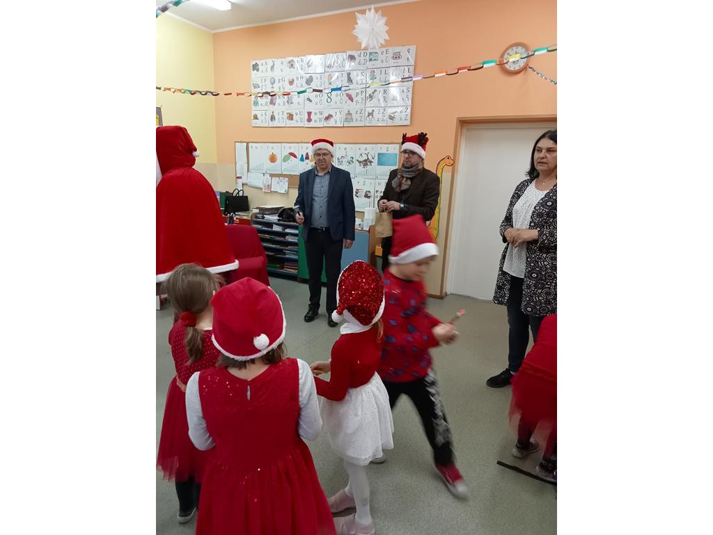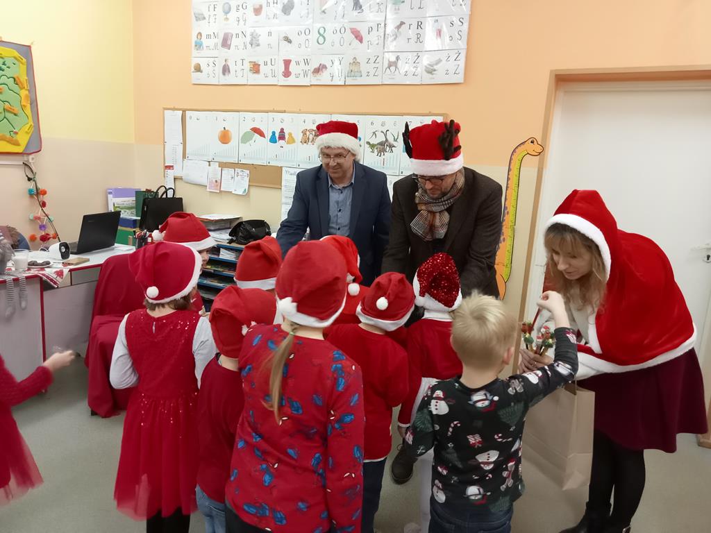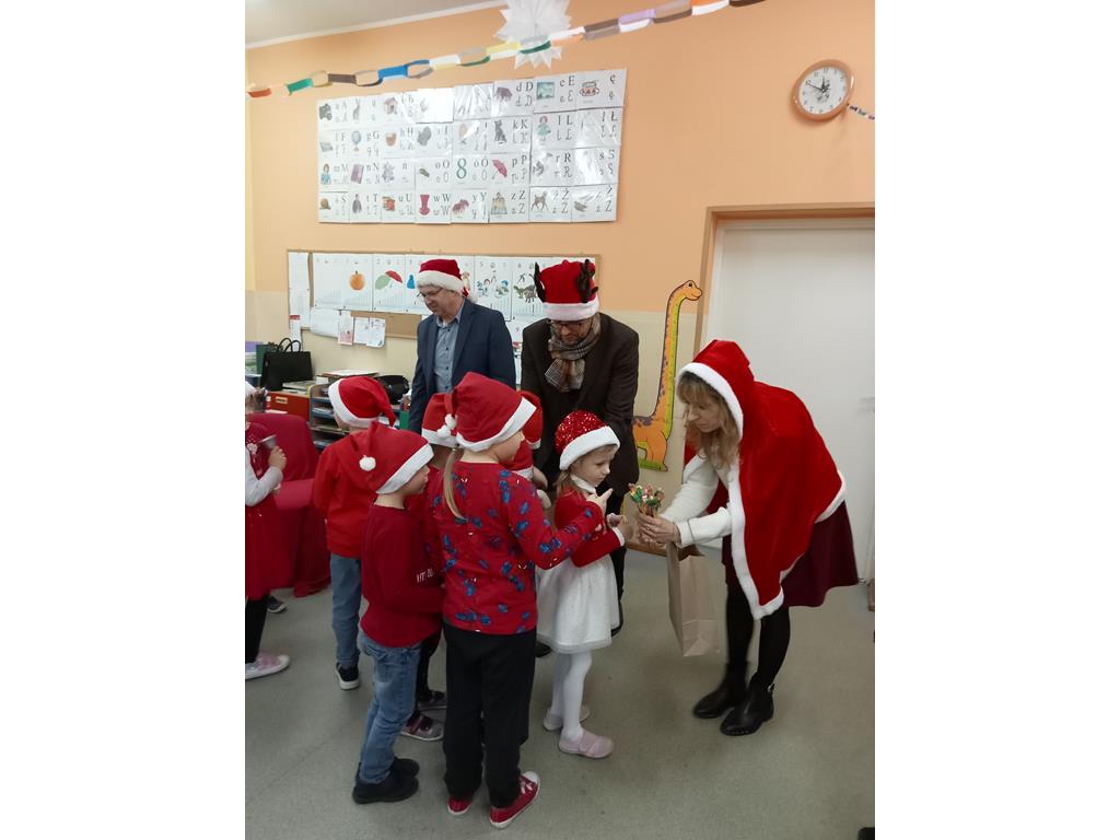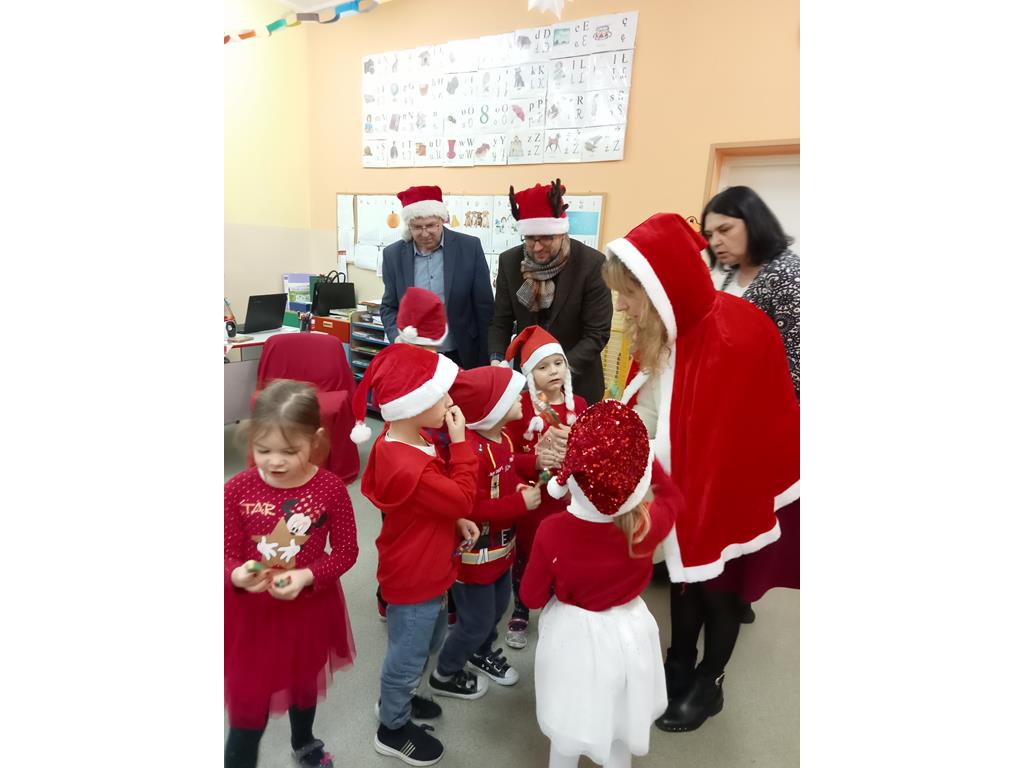 Wicewójt Cezary Przybylski wraz z przedstawicielami Gminy Słupca przybyli w ten mikołajkowy dzień do najmłodszych dzieci naszej szkoły. Dzieci zostały obdarowane upominkami i słodkościami.