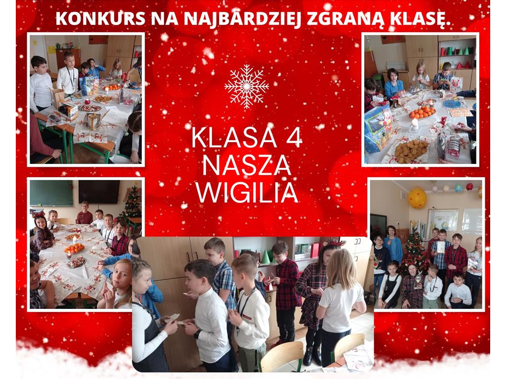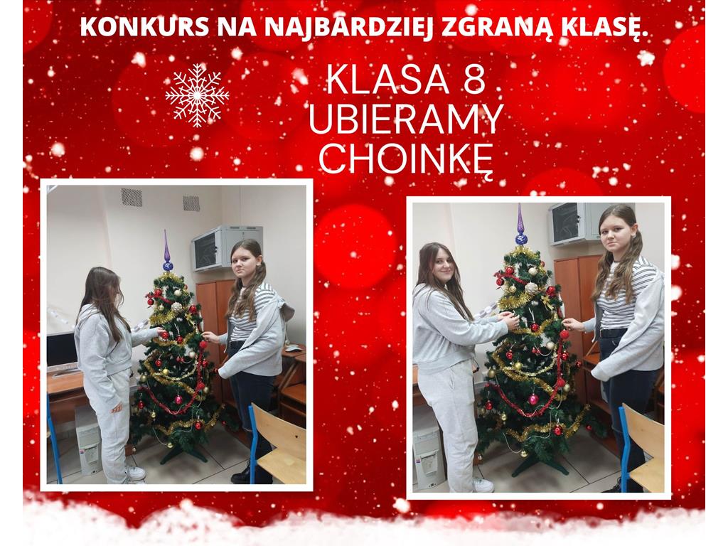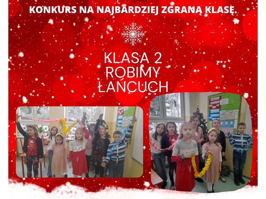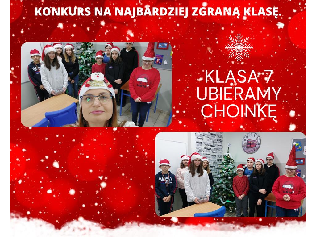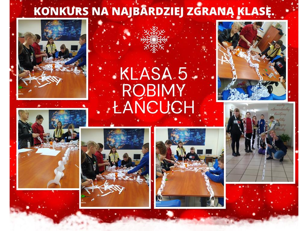 W grudniu wszystkie klasy realizowały zadania konkursowe na najbardziej zgraną klasę w ramach zabawy z Samorządem Uczniowskim. Każda miała zaśpiewać kolędę, zrobić łańcuch z papieru, ozdobić swoją salę lekcyjną, ubrać choinkę oraz zorganizować wigilię. Opiekunom Samorządu trudno było wybrać tą jedną jedyną klasę, która najlepiej wywiązała się ze swoich zadań. Każda choinka była wyjątkowa, klasa cudnie ubrana, a kolęda pięknie zaśpiewana. W związku z tym, wszystkie klasy, które przesłały zdjęcia i filmy otrzymały od Samorządu Uczniowskiego tytuł: „Najbardziej zgrana klasa”. Zapraszamy do obejrzenia fotorelacji z realizacji konkursu oraz odsłuchania kolęd.
