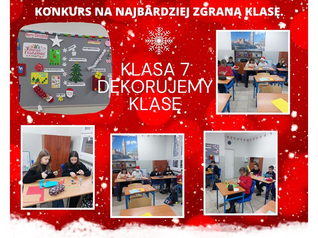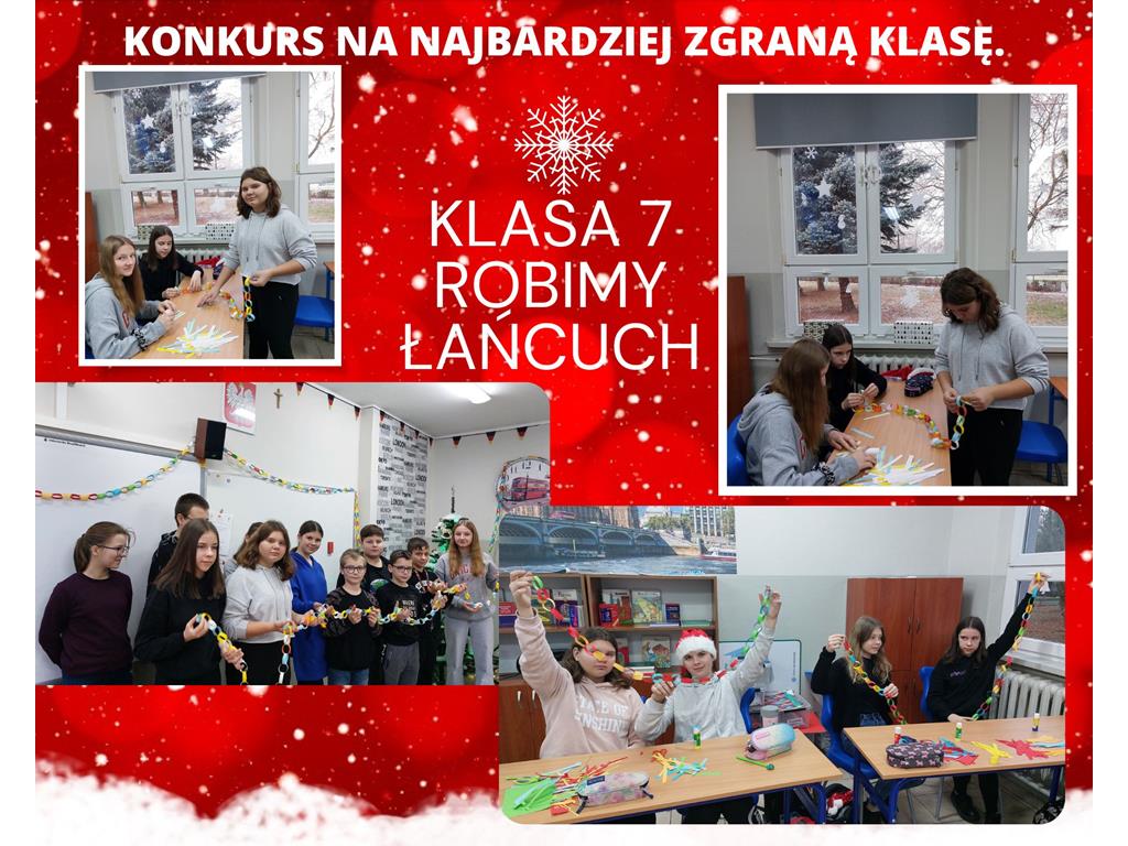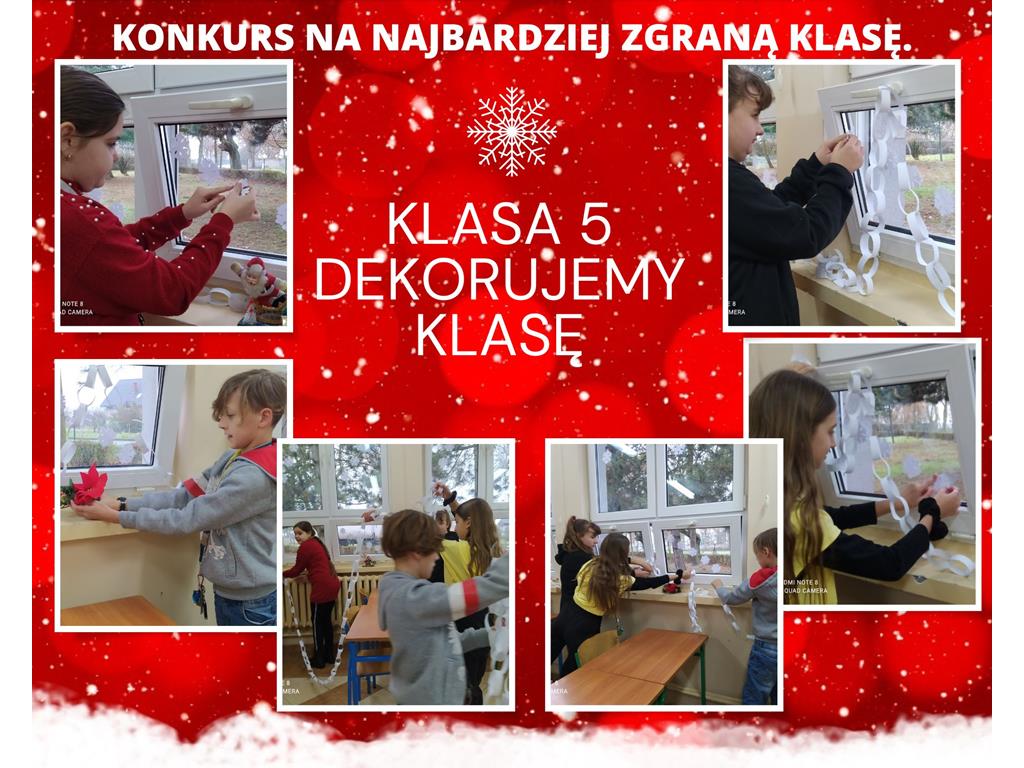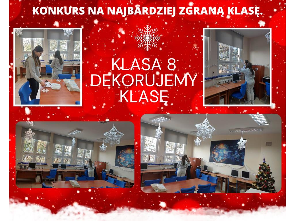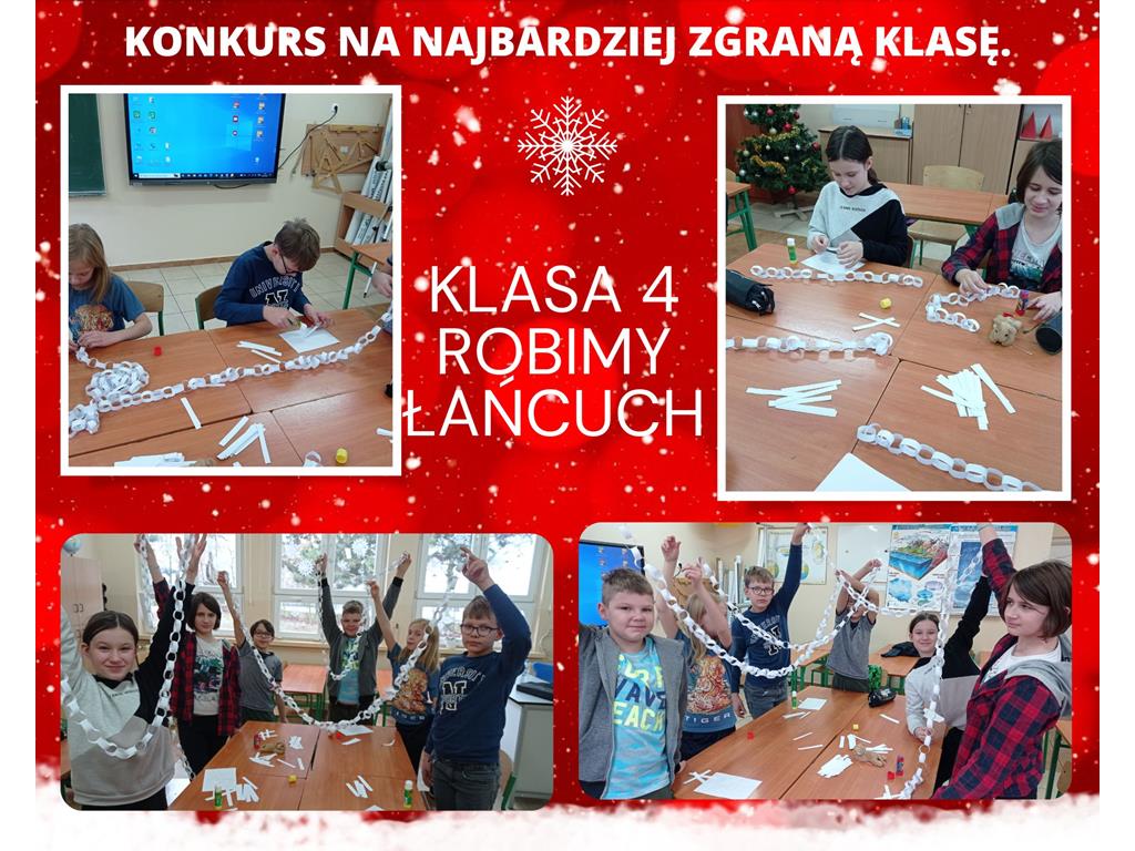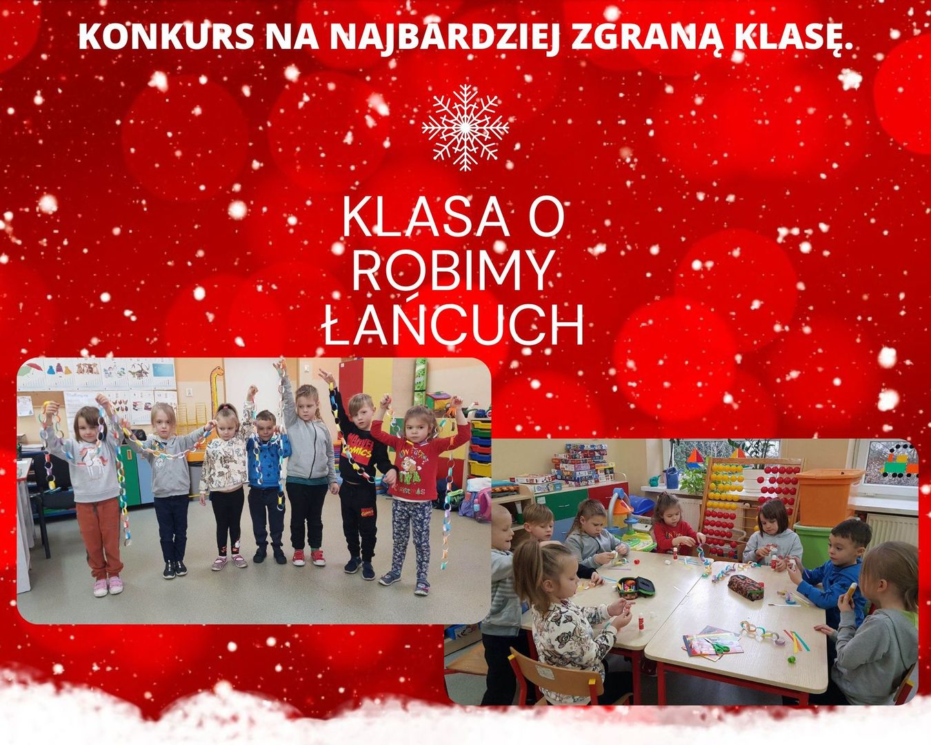 W grudniu wszystkie klasy realizowały zadania konkursowe na najbardziej zgraną klasę w ramach zabawy z Samorządem Uczniowskim. Każda miała zaśpiewać kolędę, zrobić łańcuch z papieru, ozdobić swoją salę lekcyjną, ubrać choinkę oraz zorganizować wigilię. Opiekunom Samorządu trudno było wybrać tą jedną jedyną klasę, która najlepiej wywiązała się ze swoich zadań. Każda choinka była wyjątkowa, klasa cudnie ubrana, a kolęda pięknie zaśpiewana. W związku z tym, wszystkie klasy, które przesłały zdjęcia i filmy otrzymały od Samorządu Uczniowskiego tytuł: „Najbardziej zgrana klasa”. Zapraszamy do obejrzenia fotorelacji z realizacji konkursu oraz odsłuchania kolęd.