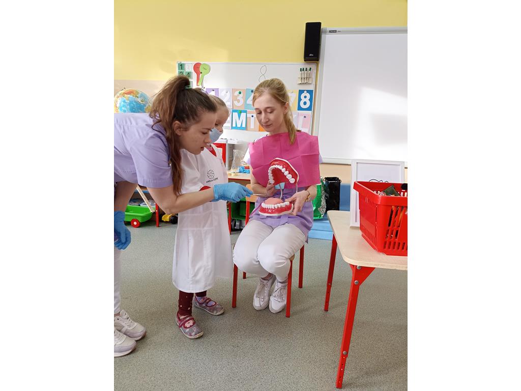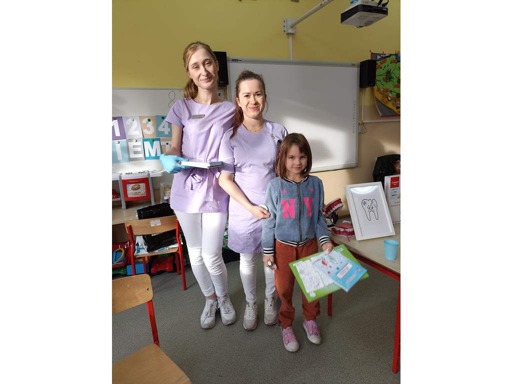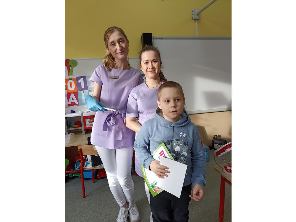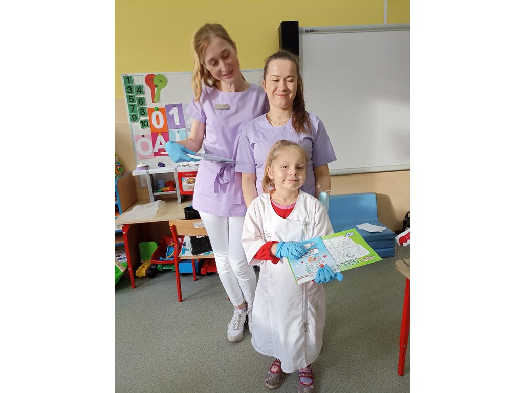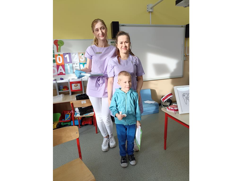 Dnia 17 stycznia naszą grupę odwiedziły higienistki stomatologiczne Pani Andżelika Kasprzyk i Joanna Kaczorowska . Celem wizyty była rozmowa na temat konieczności dbania o higienę jamy ustnej, przełamanie obaw przed wizytą u stomatologa, a także kształtowanie nawyków prozdrowotnych. Panie opowiedziała dzieciom jak należy dbać o higienę jamy ustnej, jaka jest najlepsza technika mycia zębów. Dzieci miały okazję wcielić się w rolę stomatologa i pacjenta. Teraz już wszyscy wiedzą, jak należy dbać o zęby i jak je myć. Serdecznie dziękujemy za pięknie przygotowane warsztaty, cenne wskazówki, które na pewno wykorzystamy w praktyce.