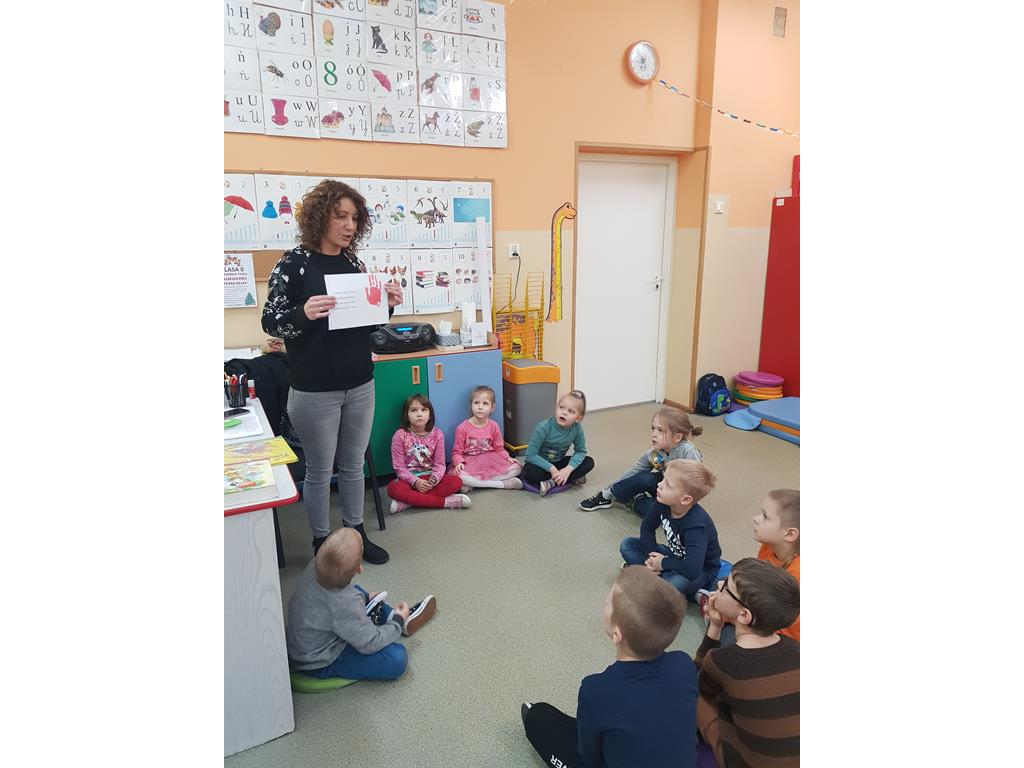 Przy współpracy z Biblioteką Publiczną w Cieninie Zabornym w dniu 18.01.23r. zostały przeprowadzone w oddziale przedszkolnym zajęcia edukacyjne. Tematyką zajęć było zbliżające się święto Babci i Dziadka. Dzieci wysłuchał opowiadania nawiązującej do święta i wykonały własnoręcznie laurki.