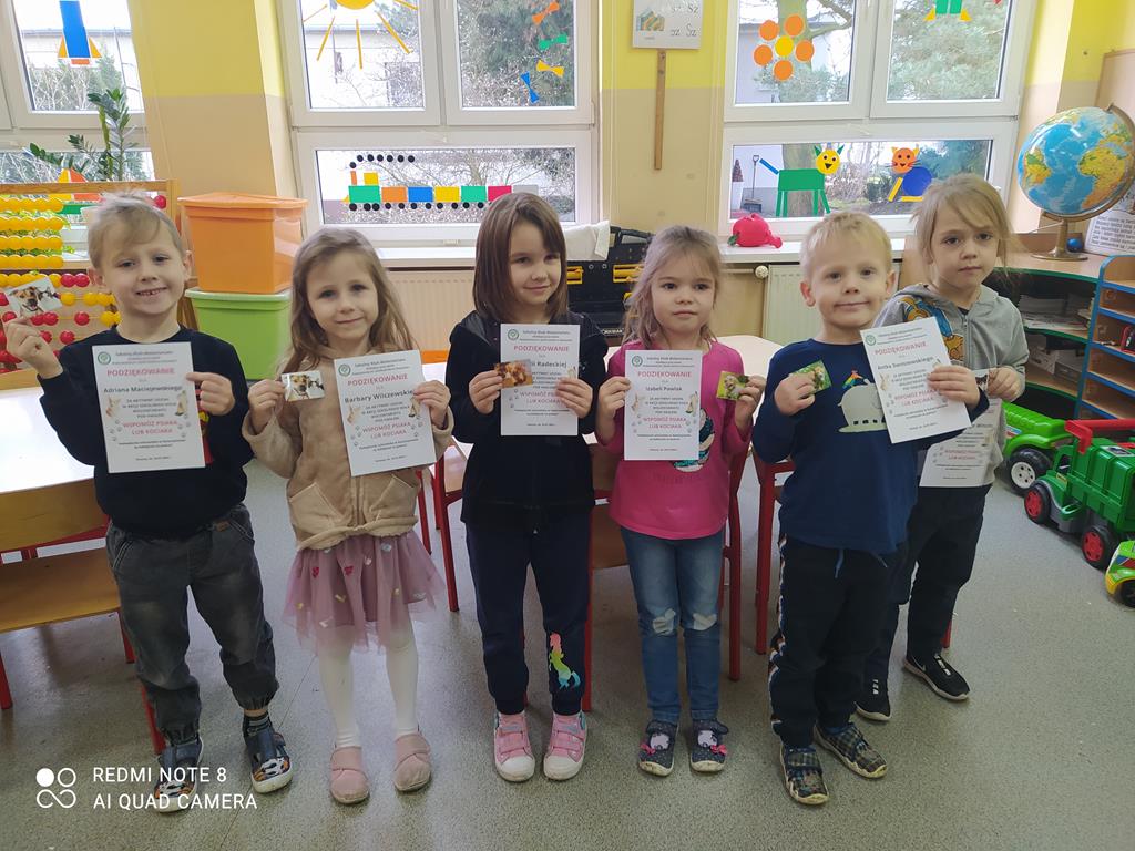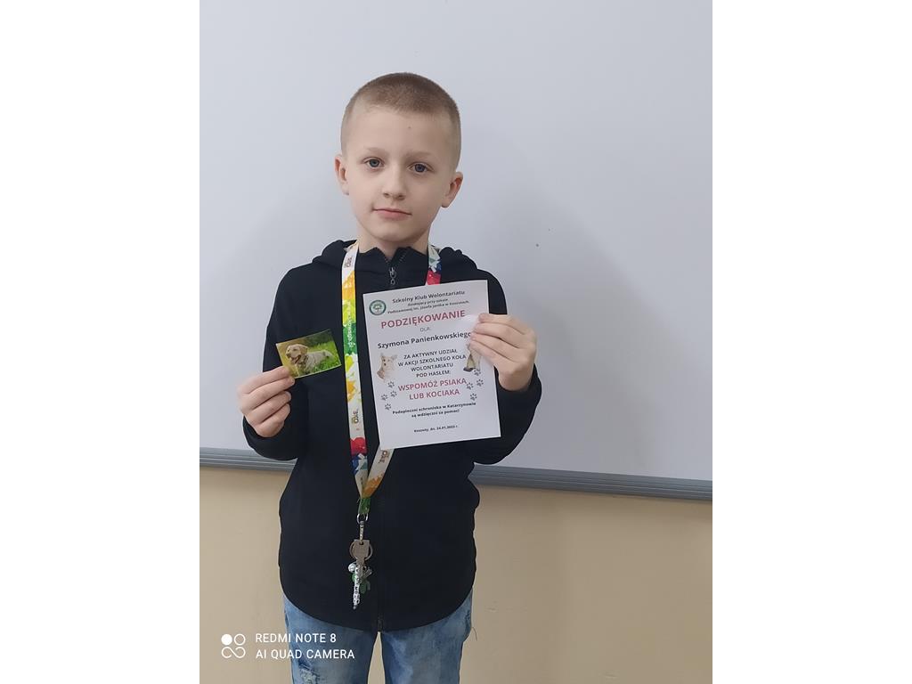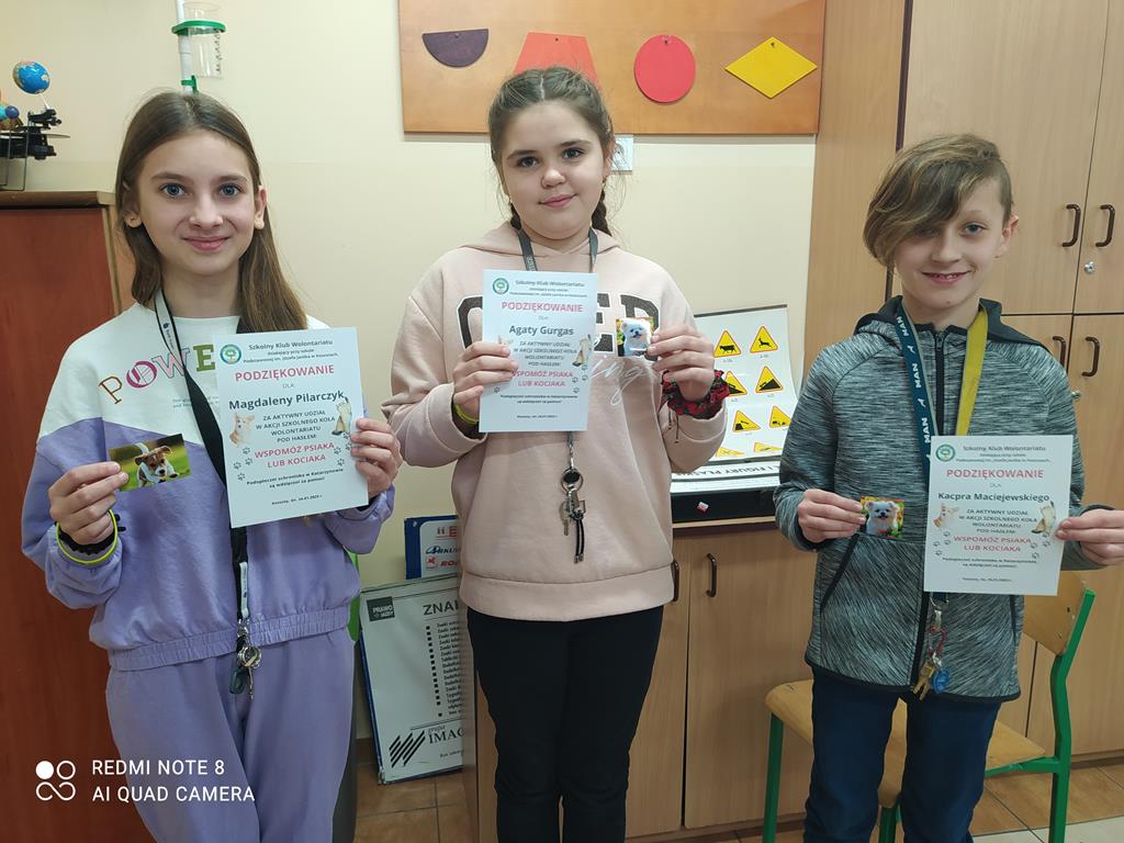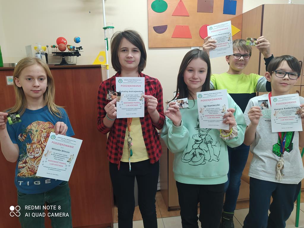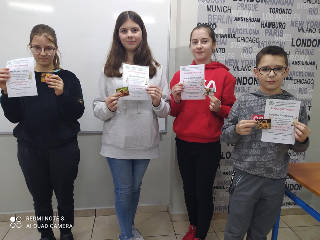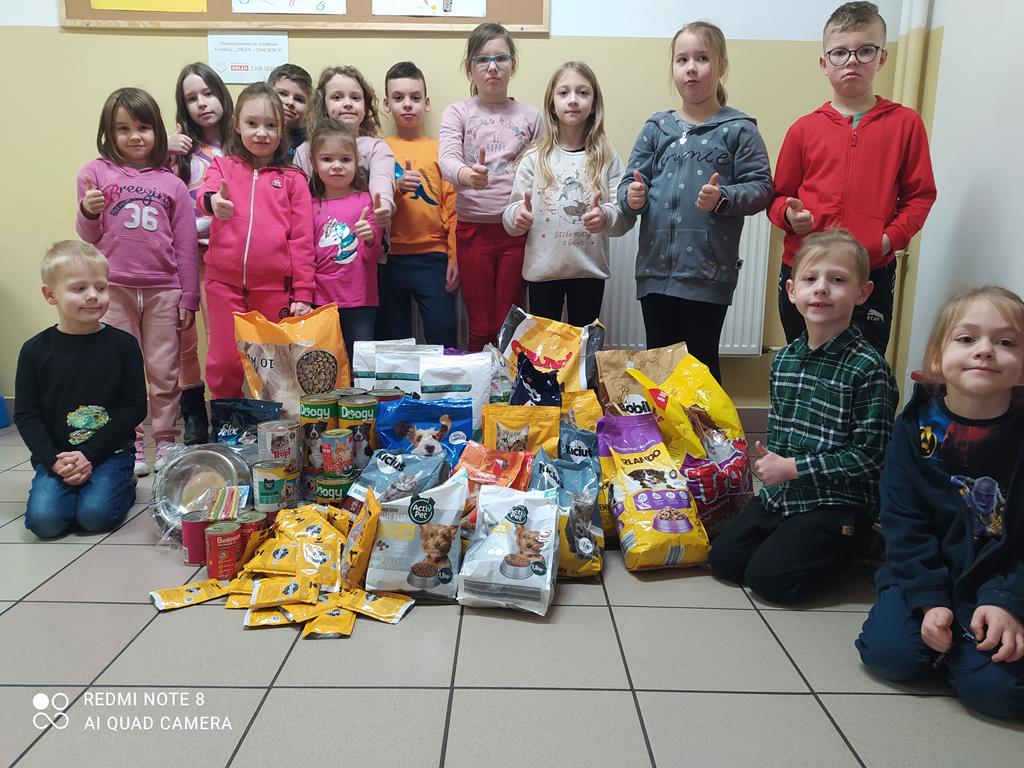 Składamy serdeczne podziękowania uczniom, naszej szkoły za aktywny udział w corocznej zbiórce karmy dla bezdomnych zwierząt ze schroniska w Katarzynowie. W tym roku również nie zawiedliście. Dziękujemy również rodzicom, którzy dostarczyli dary do szkoły. Dzięki dużemu zaangażowaniu i zrozumieniu zgromadziliśmy sporą ilość karmy oraz drobnych smakołyków i zabawek dla psów i kotów- 100 kg. Po zakończonej zbiórce dary zostały przekazane do schroniska. Dzieci, które włączyły się w zbiórkę otrzymały od pracowników schroniska pamiątkowy magnes z wizerunkiem zwierzątka, a od organizatorów pamiątkowe dyplomy- podziękowania.