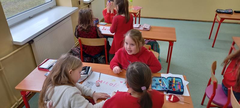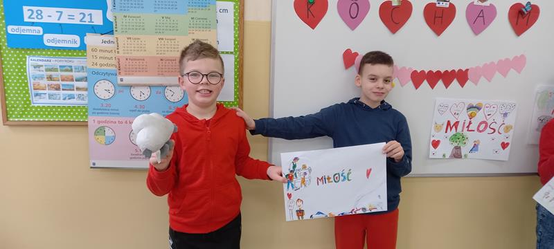 14 lutego uczniowie klasy II uczestniczyli w zajęciach poświęconych miłości. Odpowiadali na pytania kogo kochają, w jaki sposób można wyrażać swoją miłość i czy można kochać tylko ludzi? Podczas pracy grupowej tworzyli w formie plakatu własną definicję miłości. W tym pięknym dniu nie zabrakło również słodkiego poczęstunku w postaci lizaka serduszka. Uczniowie przygotowali także kartki walentynkowe z wyrazami sympatii dla swoich kolegów i koleżanek, które zostały im przekazane pocztą walentynkową.