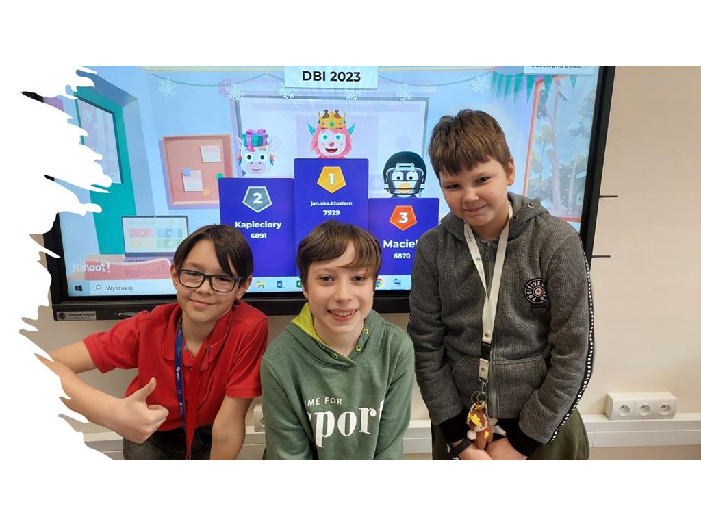 Na zakończenie uczniowie szkoły wzięli aktywny udział w teście z wykorzystaniem aplikacji Kahoot, wykazywali się swoją wiedzą o podstawowych zasadach zachowania się z Internecie. Uczniów klas starszych natomiast najbardziej zaciekawiła możliwość wzięcia udziału, dzięki której mogli udzielać odpowiedzi przez telefon. Reprezentanci klas z zaangażowaniem odpowiadali na pytania z quizu, przy tym dobrze się bawiąc.