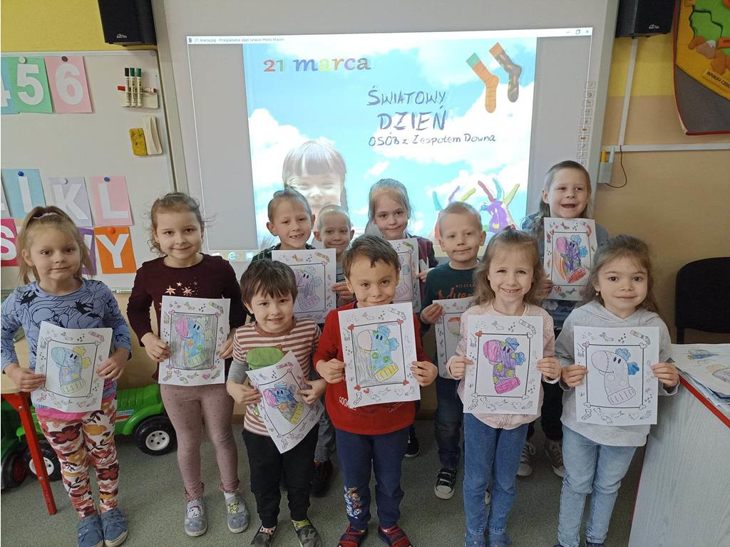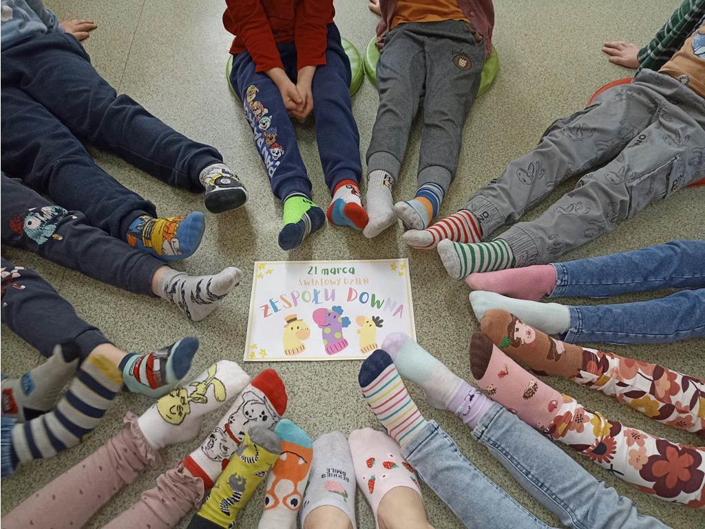 W tym roku nasze przedszkole włączyło się w obchody „Dnia Kolorowej Skarpetki” Podczas krótkiej pogadanki udało nam się ustalić, że każdy z nas jest na swój sposób inny, różnimy się pod wieloma względami i ta inność i różnorodność jest naturalną rzeczą. Osoby z Zespołem Downa żyją wśród nas. Tak jak my bawią się, śmieją i spełniają swoje marzenia - bez względu na różnicę w liczbie chromosomów.