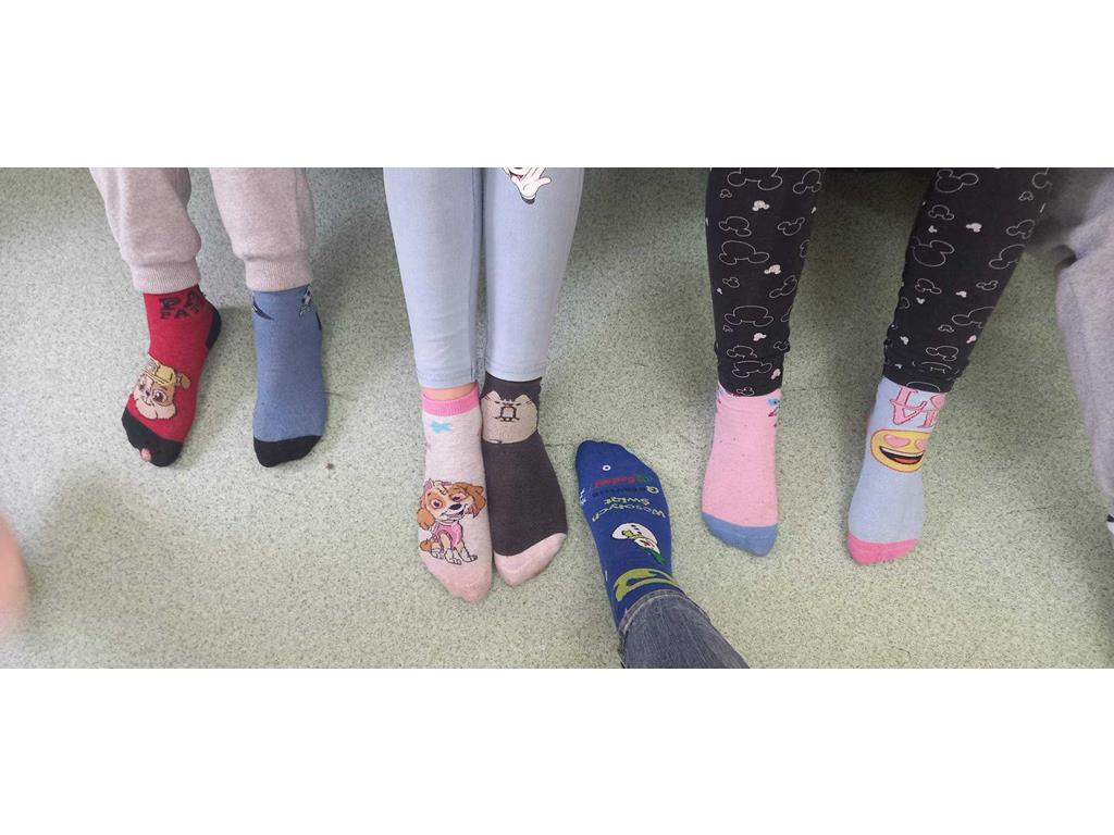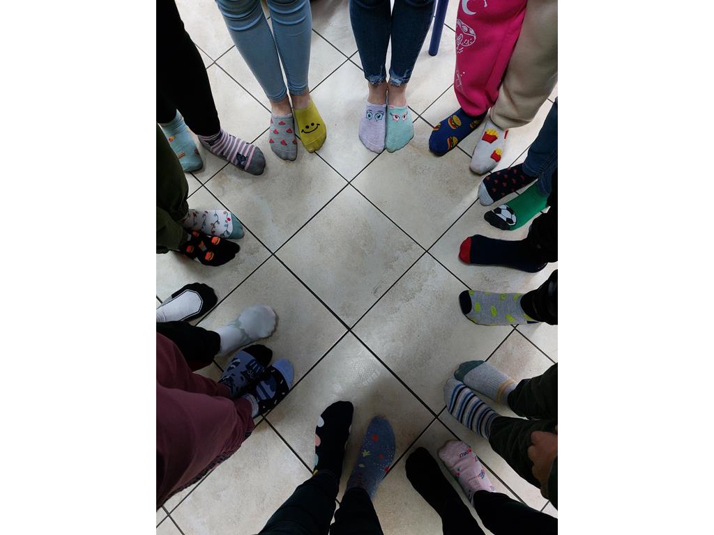 By pokazać solidarność z osobami z Zespołem Downa wszyscy założyli skarpetki nie do pary.