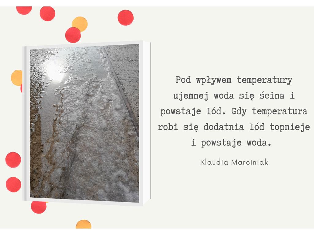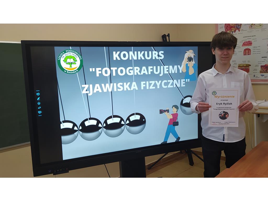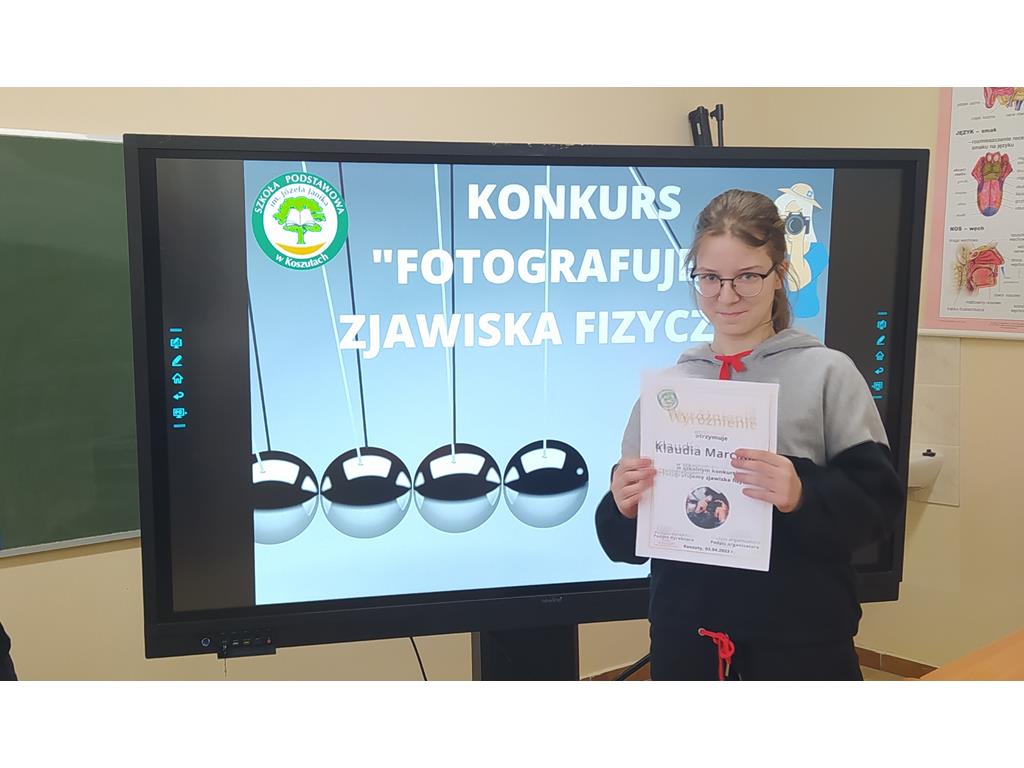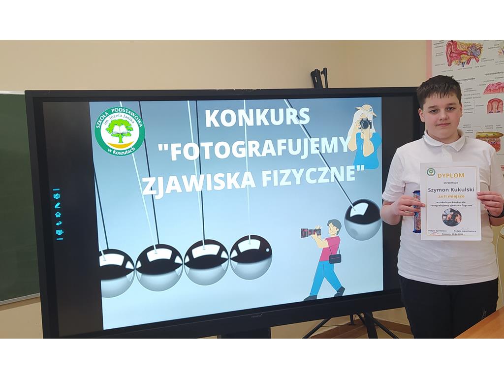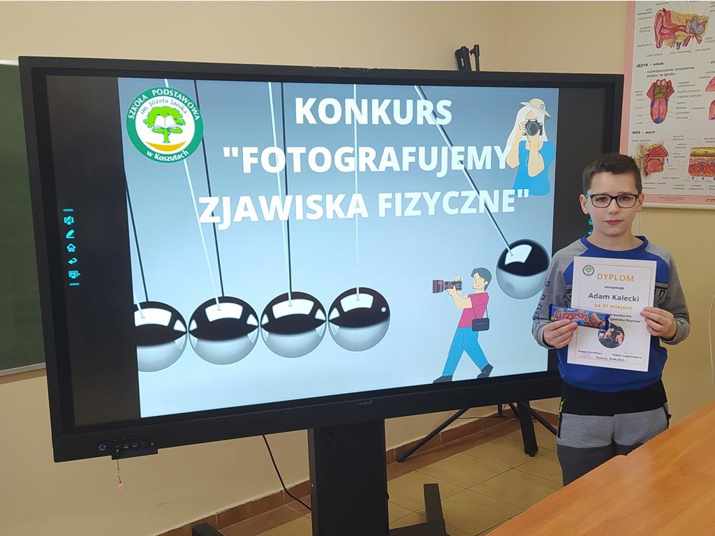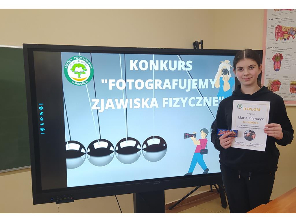 W marcu w naszej szkole trwał konkurs skierowany do uczniów klasy VII oraz VIII, którzy uczą się fizyki. Jego celem było wykorzystanie pojęć i wielkości fizycznych do opisu zjawisk oraz wskazanie ich przykładów w otaczającej rzeczywistości oraz poszukiwanie, porządkowanie, krytyczna analiza i wykorzystanie informacji z różnych źródeł, rozwijanie zainteresowań i uzdolnień uczniów, stwarzanie uczniom możliwości osiągnięcia sukcesu a także popularyzacja fizyki. Uczestnicy, zgodnie z warunkami konkursu, nadsyłali zdjęcia przedstawiające zaobserwowane zjawisko wraz z krótkim opisem. Autorem najciekawszego zdjęcia i opisu jest Maria Pilarczyk z klasy VII, która otrzymała pierwsze miejsce. Drugie zajął Szymon Kukulski z klasy VIII, trzecie Adam Kalecki z klasy VII. Wyróżnienia otrzymali Klaudia Marciniak z klasy VII oraz Eryk Ryźlak z klasy VIII. Wszystkim uczestnikom serdecznie gratulujemy.