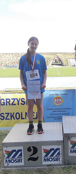 29.05.2023r. w Pile odbył się Finał Województwa Wielkopolskiego w Czwórboju Lekkoatletycznym, w którym startowało 114 dziewcząt a nasza uczennica Dominika Waszak stanęła trzy krotnie na podium zdobywając trzy srebrne medale w następujących konkurencjach : w skoku w dal z wynikiem 5,07m, biegu na 600m z czasem 1,50,70s, który okazał się również nowym rekordem szkoły oraz uzyskując 381 punktów w ogólnej klasyfikacji indywidualnej.