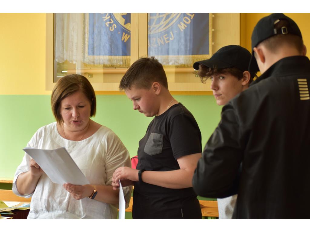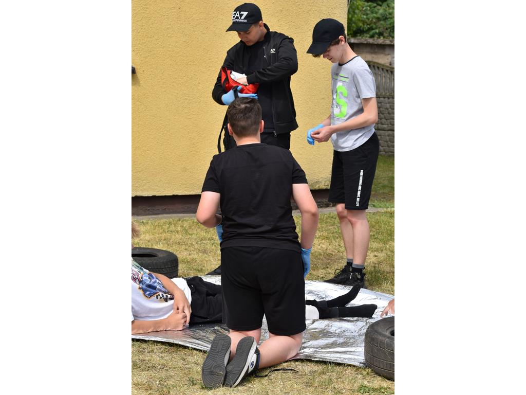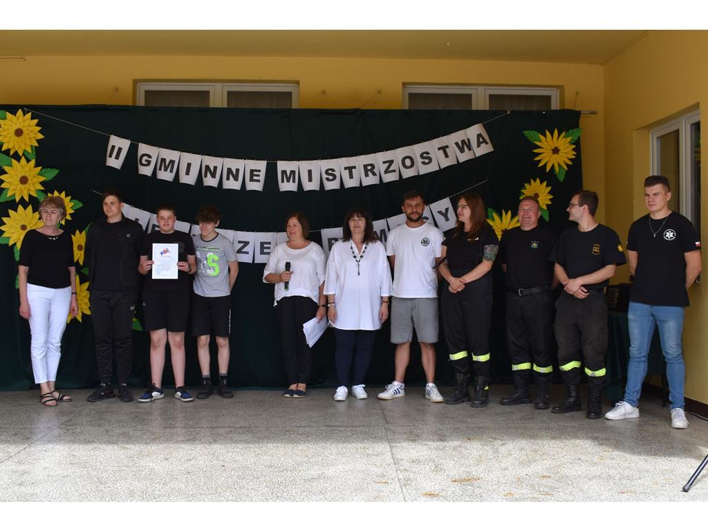 Chłopcy z klasy ósmej w składzie: Mikołaj Rewers, Szymon Kukulski i Eryk Ryźlak brali udział we współzawodnictwie udzielania pierwszej pomocy przedmedycznej. Mistrzostwa składały się 6 stacji: test teoretyczny, cztery scenki pozorowane i konkurencji sprawnościowej. Podczas każdej konkurencji drużyna była oceniana pod fachowym okiem lekarza, ratownika medycznego i strażaków.