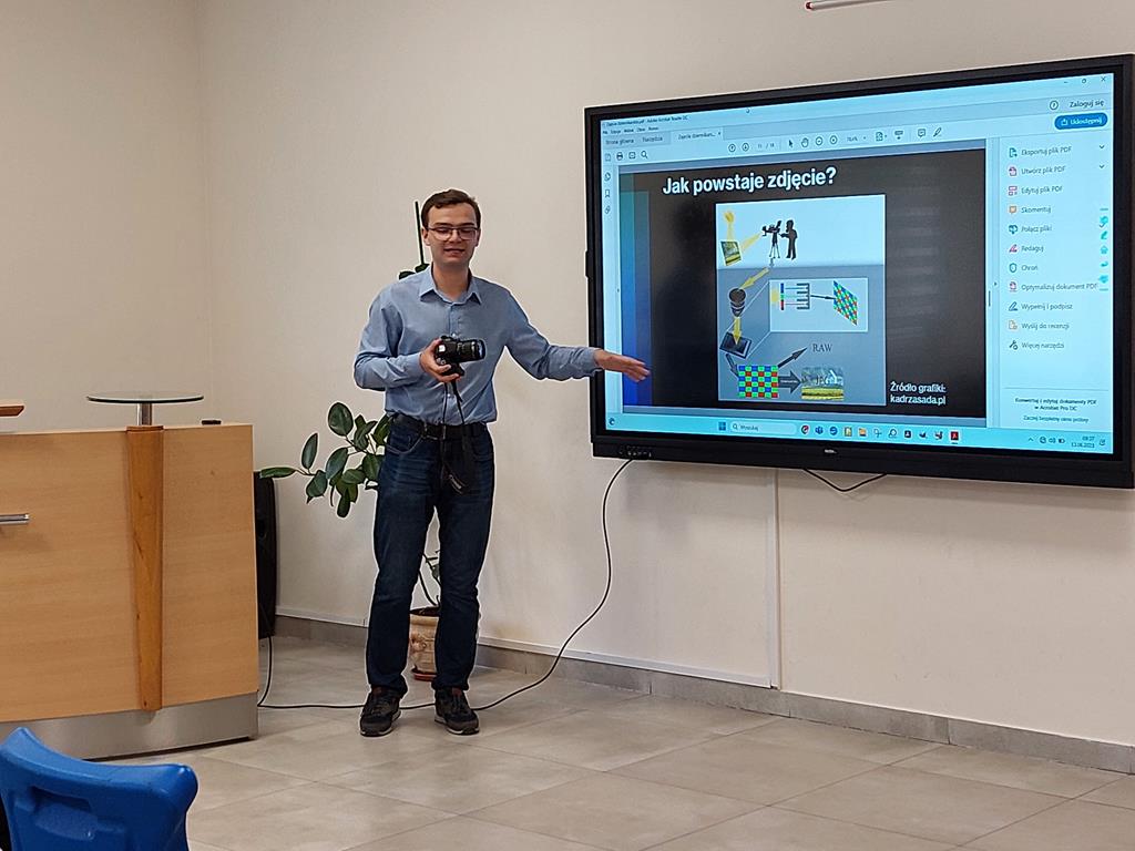 W interesujący sposób udzielił instrukcji obsługi aparatu fotograficznego i wskazał ujęcia , którymi należy się posługiwać przy montażu zdjęć. Młodzież z zainteresowaniem podjęła działania związane z wykonywaniem profesjonalnych fotografii prasowych i chętnie zgłębiała tajniki pracy dziennikarskiej.