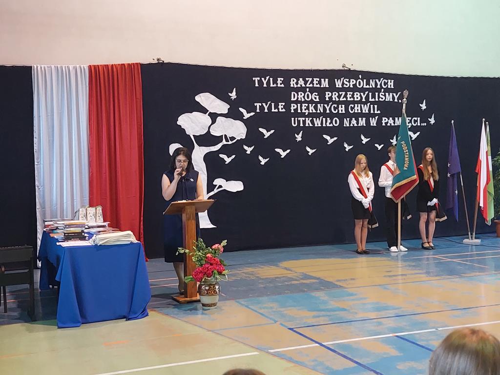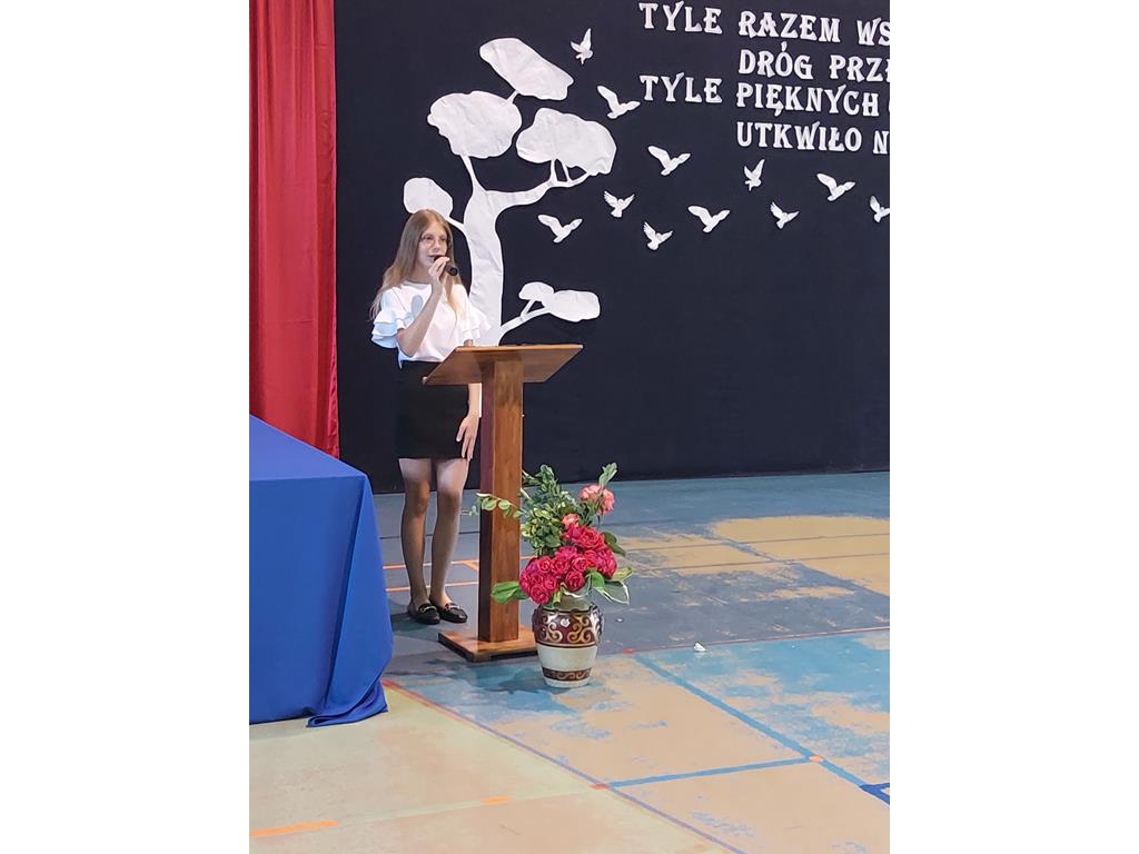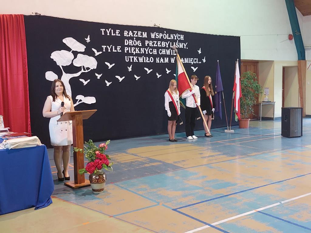 Część oficjalną uświetniło przemówienie Pani Dyrektor– Agaty Kopczyńskiej podsumowujące pracę uczniów.
