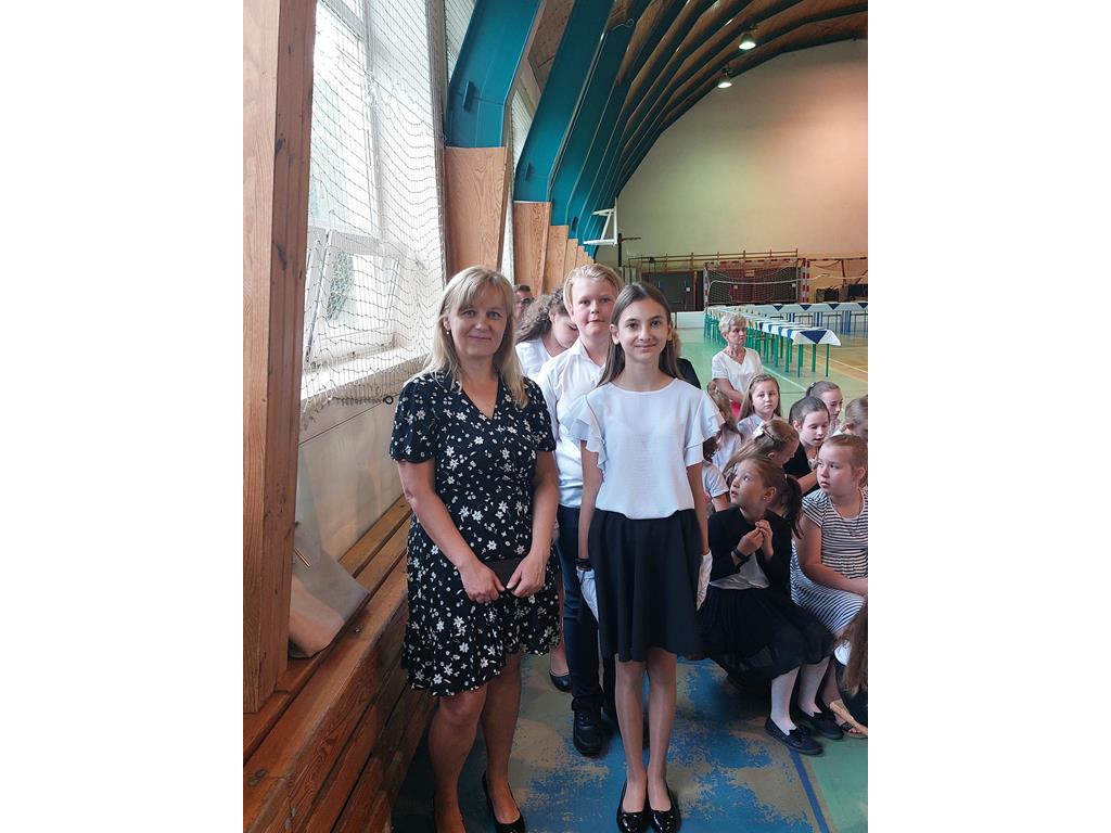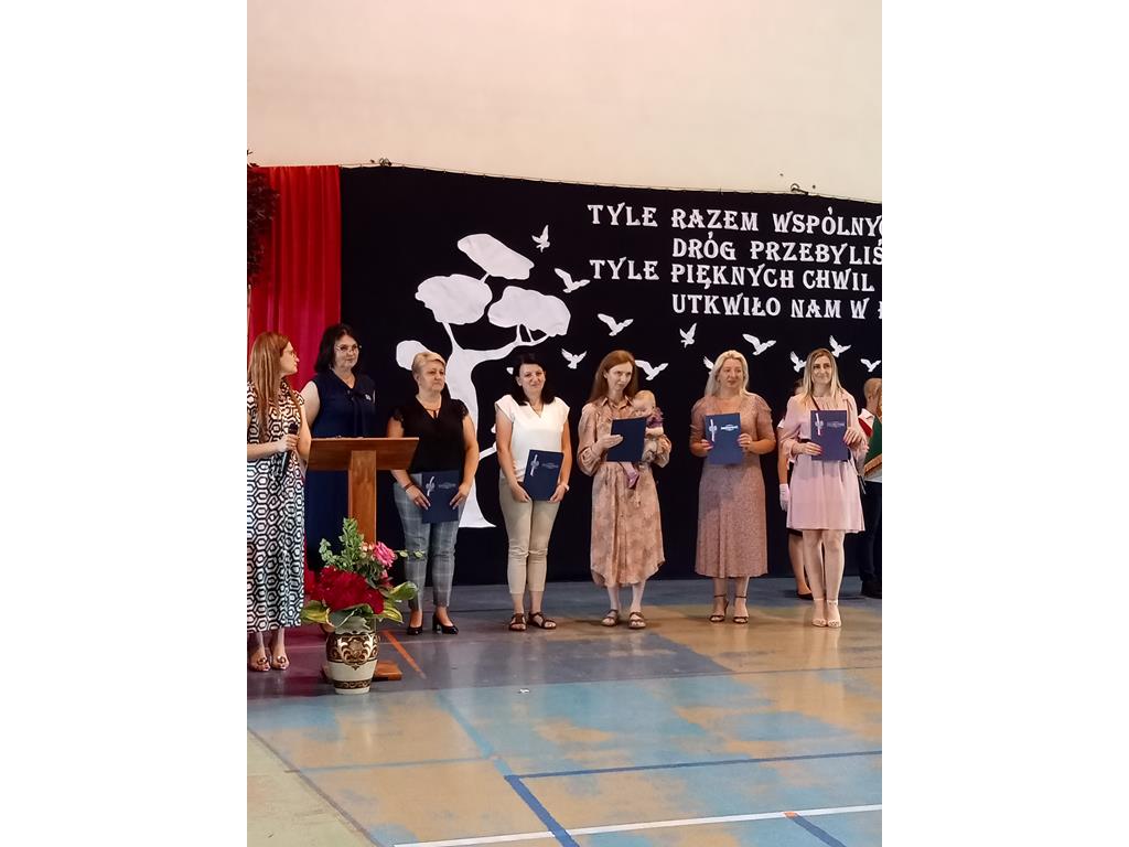 Następnie wręczono listy pochwale, pozostałe nagrody i dyplomy, a rodzice zaangażowani w pracę na rzecz szkoły otrzymali od Pani Dyrektor podziękowania.
