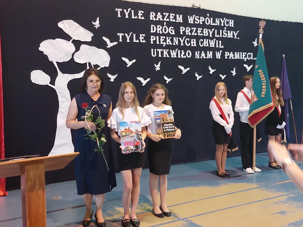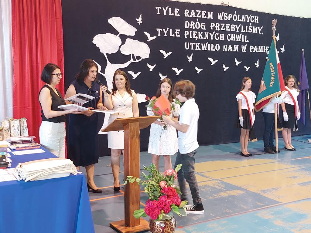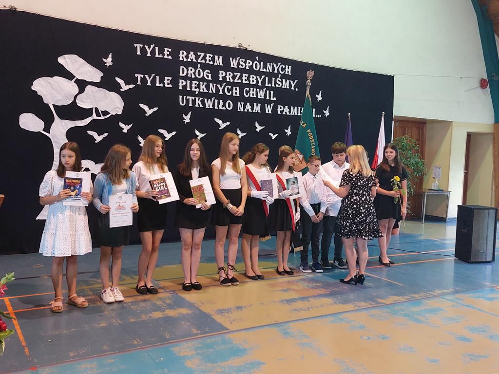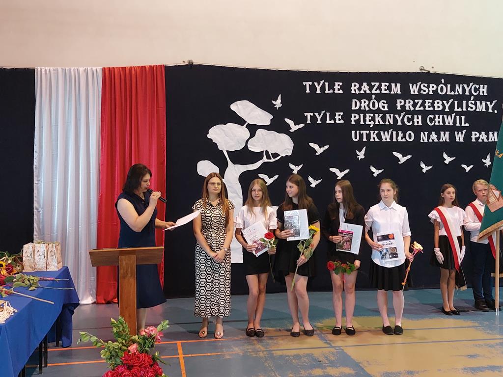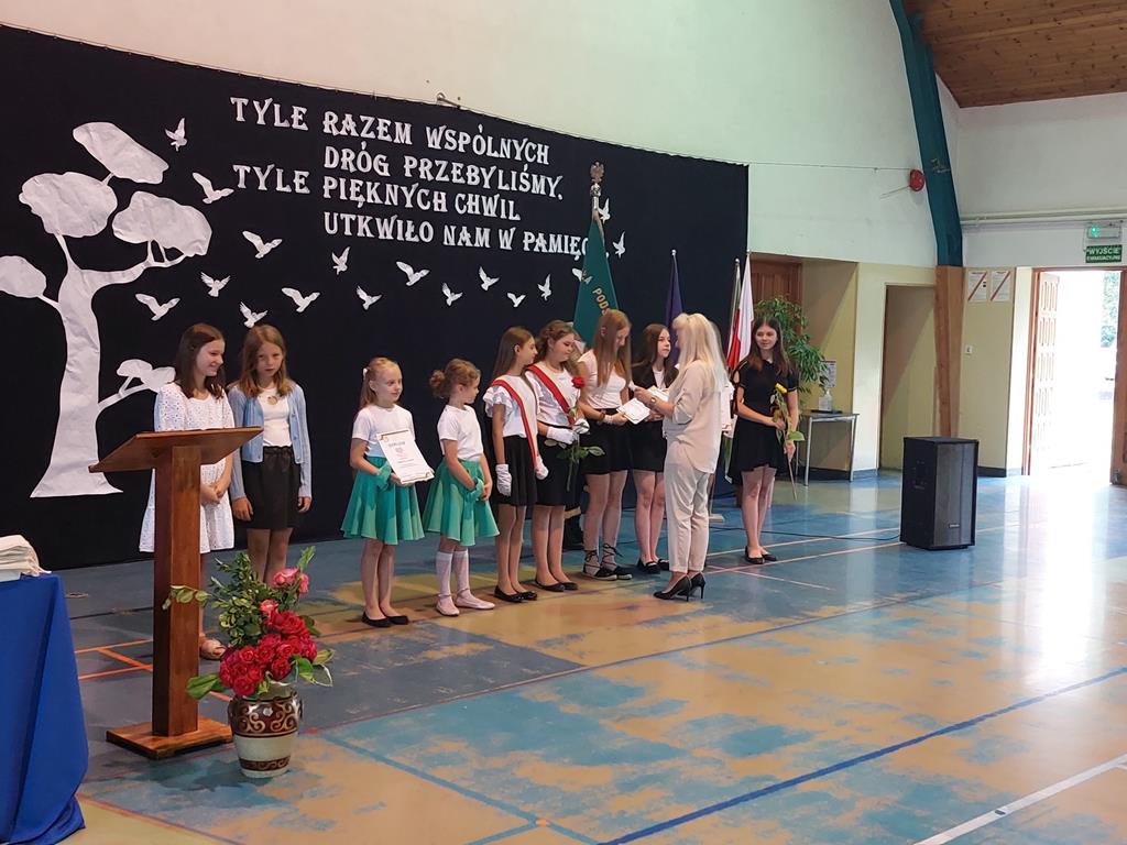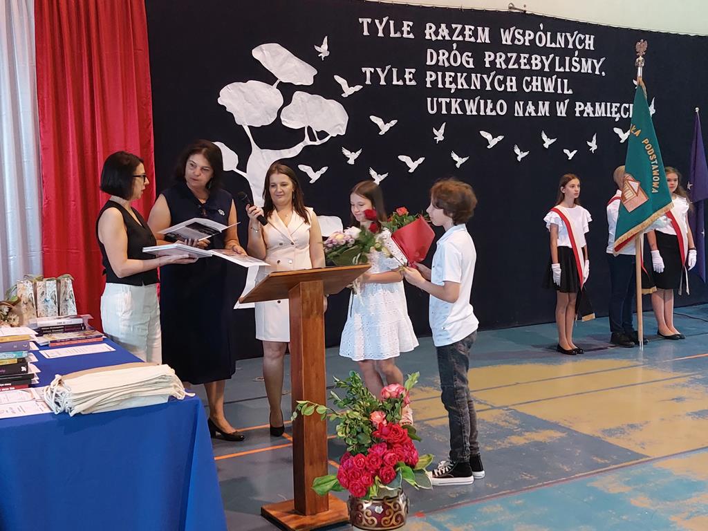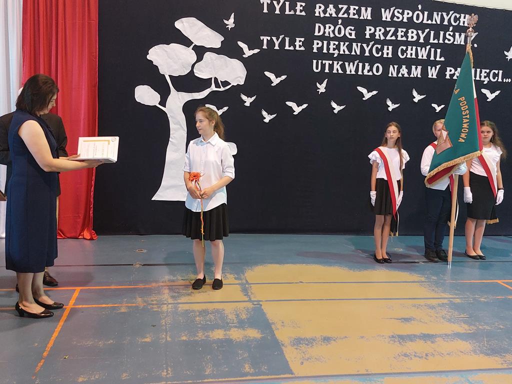 Wyróżnieni uczniowie otrzymali nagrody i dokonali wpisu do Złotej Księgi absolwentów szkoły, a ich rodzice – listy gratulacyjne. Wychowawca klasy ósmej – Anna Filipice wręczyła Świadectwa Ukończenia Szkoły pozostałym absolwentom.