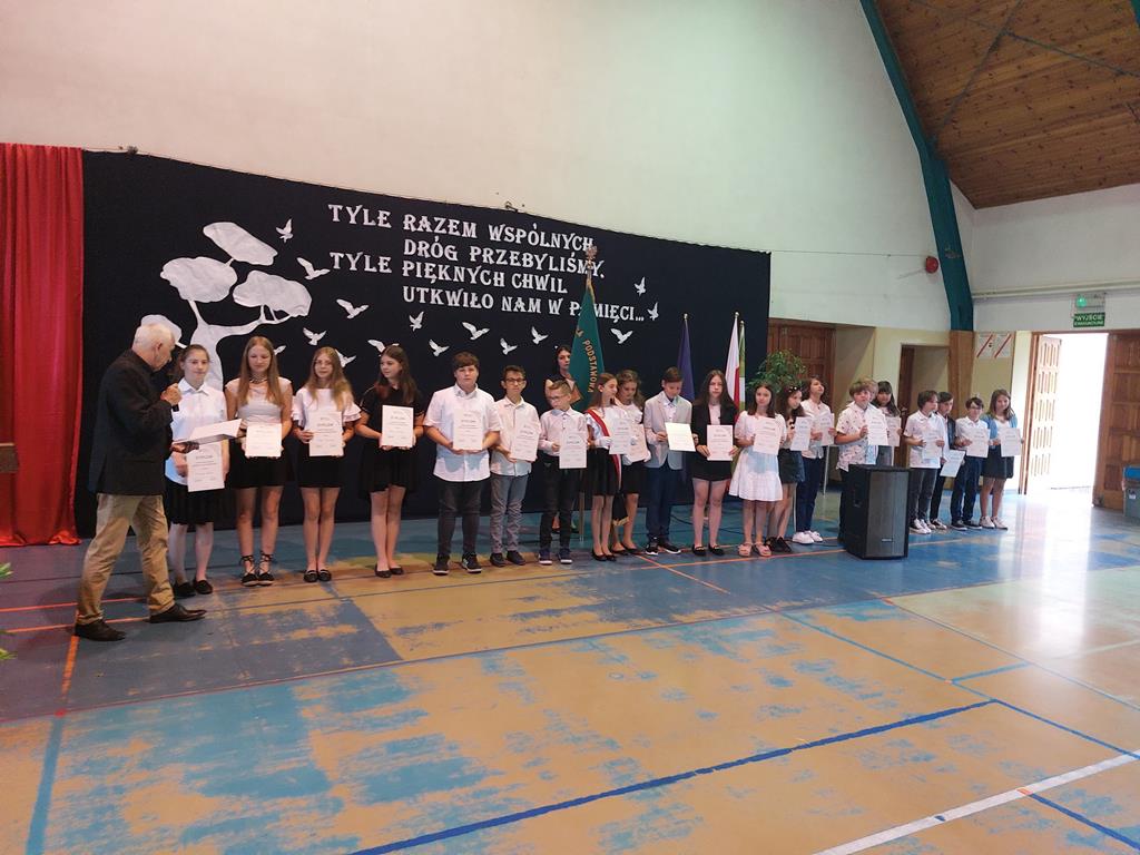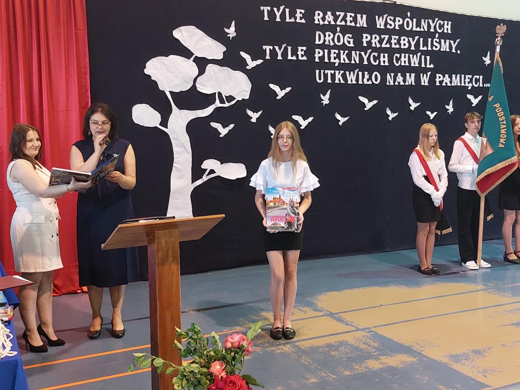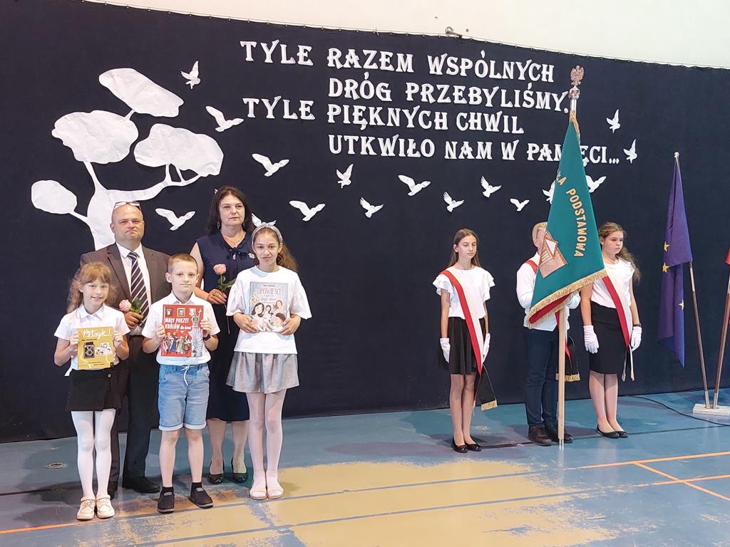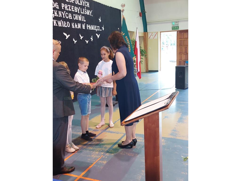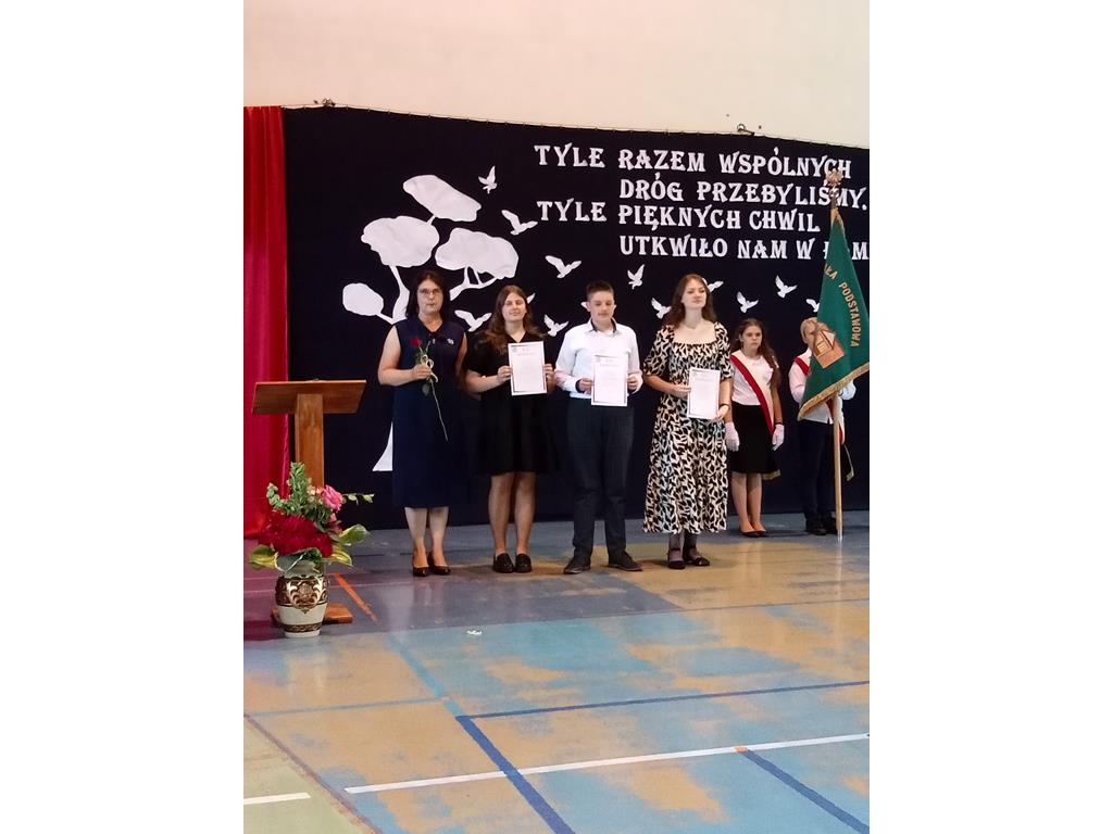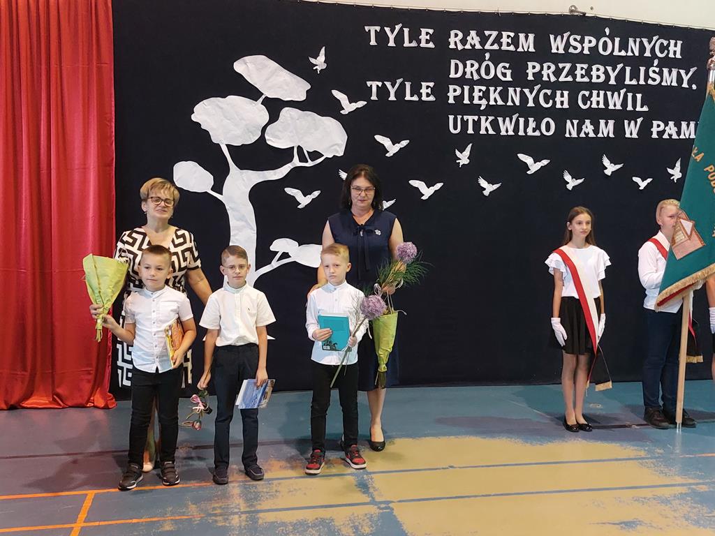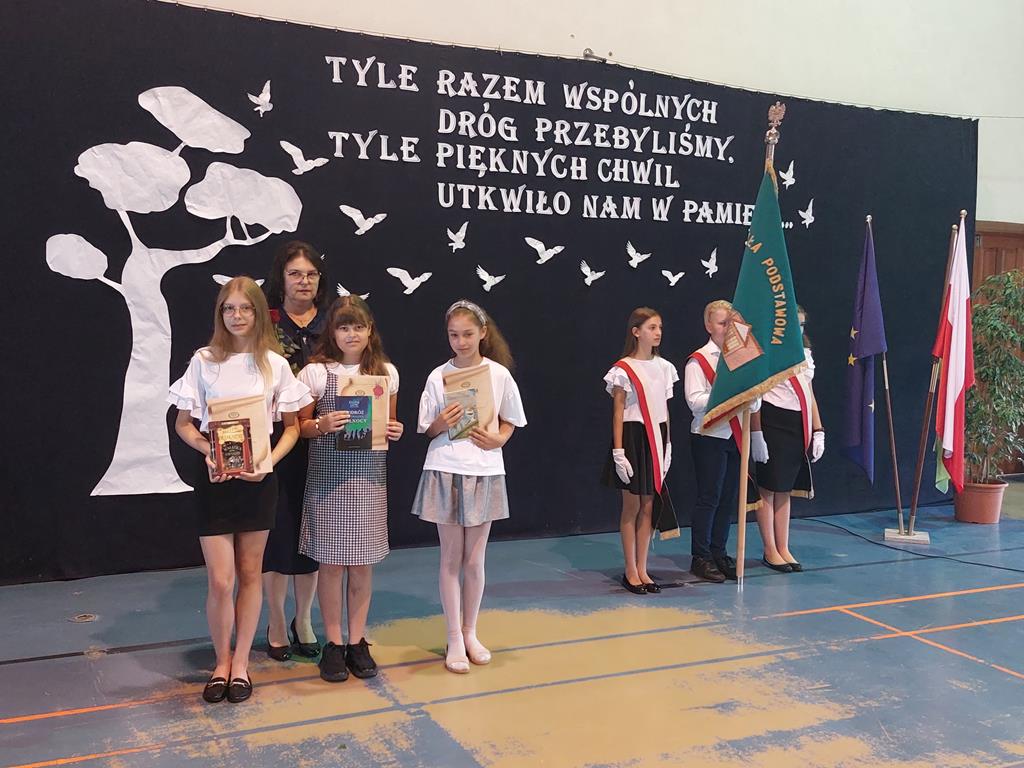 Wyróżnieni uczniowie otrzymali nagrody i dokonali wpisu do Złotej Księgi absolwentów szkoły, a ich rodzice – listy gratulacyjne. Wychowawca klasy ósmej – Anna Filipice wręczyła Świadectwa Ukończenia Szkoły pozostałym absolwentom.