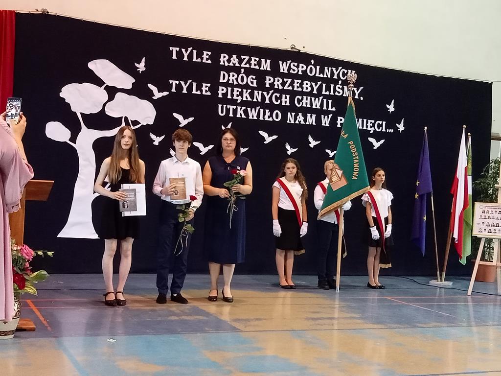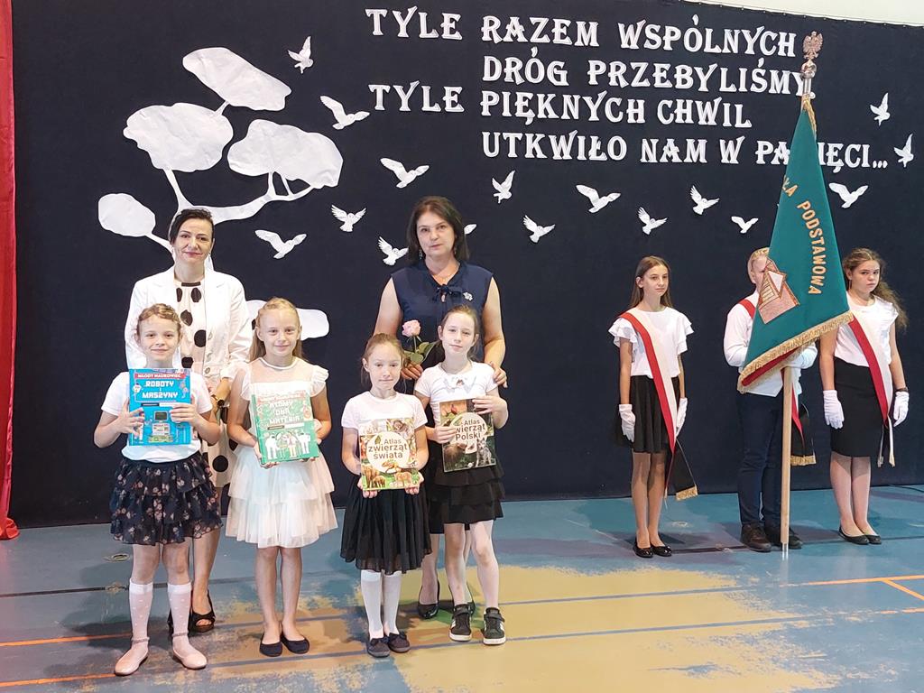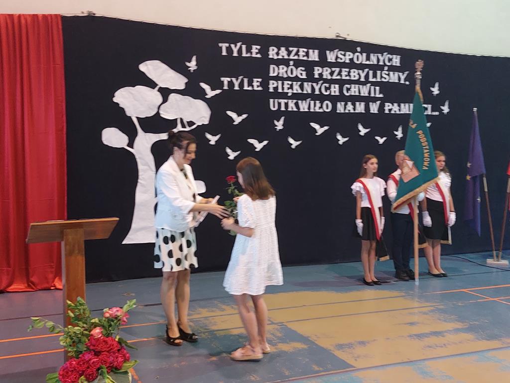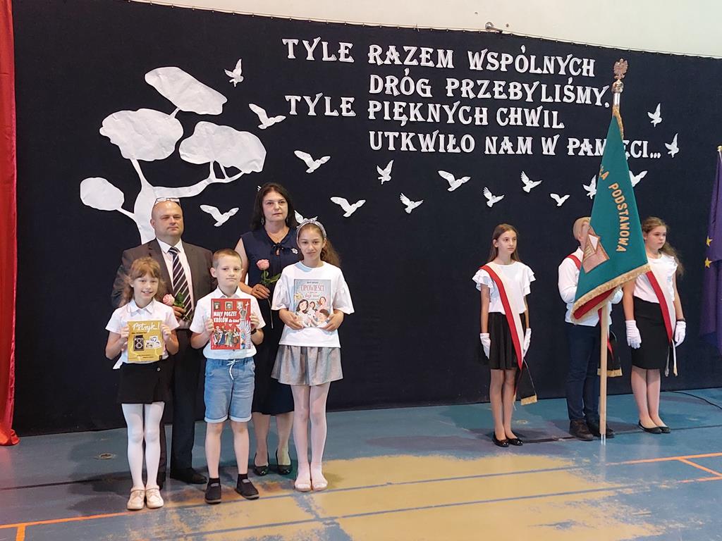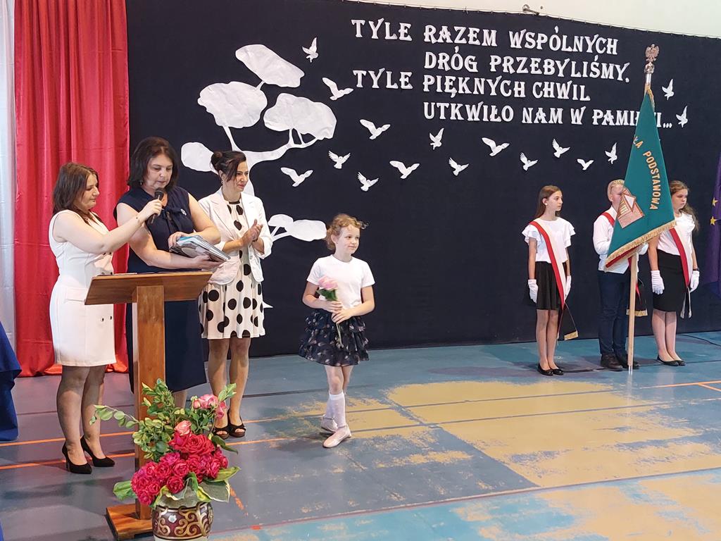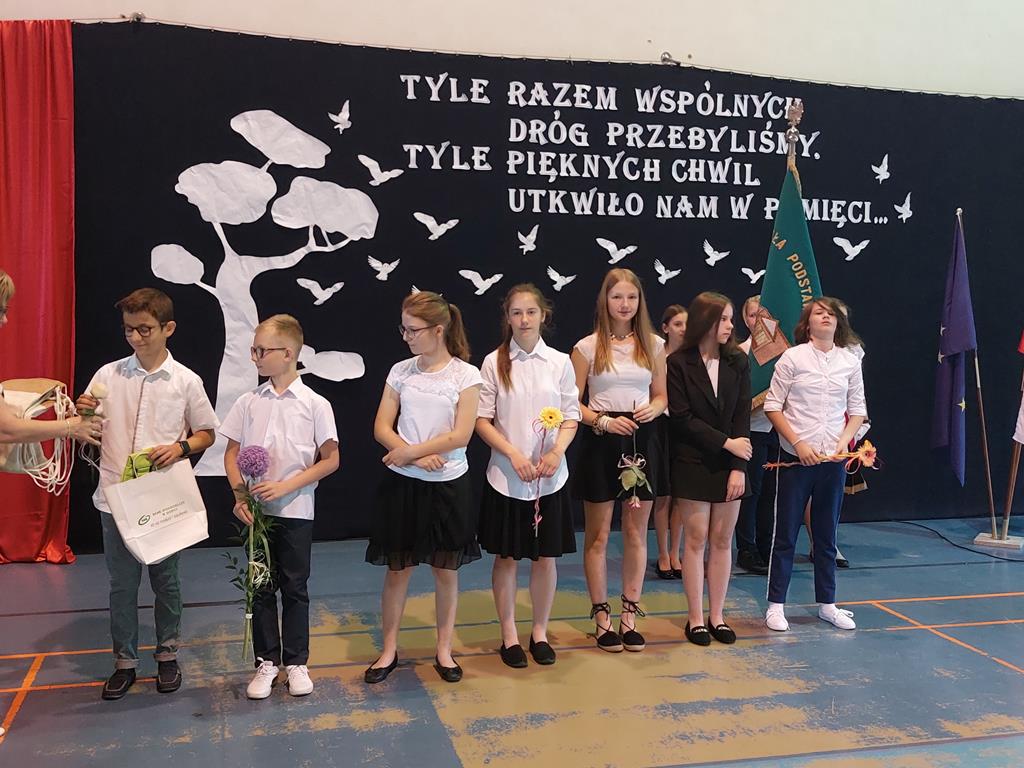 Wyróżnieni uczniowie otrzymali nagrody i dokonali wpisu do Złotej Księgi absolwentów szkoły, a ich rodzice – listy gratulacyjne. Wychowawca klasy ósmej – Anna Filipice wręczyła Świadectwa Ukończenia Szkoły pozostałym absolwentom.