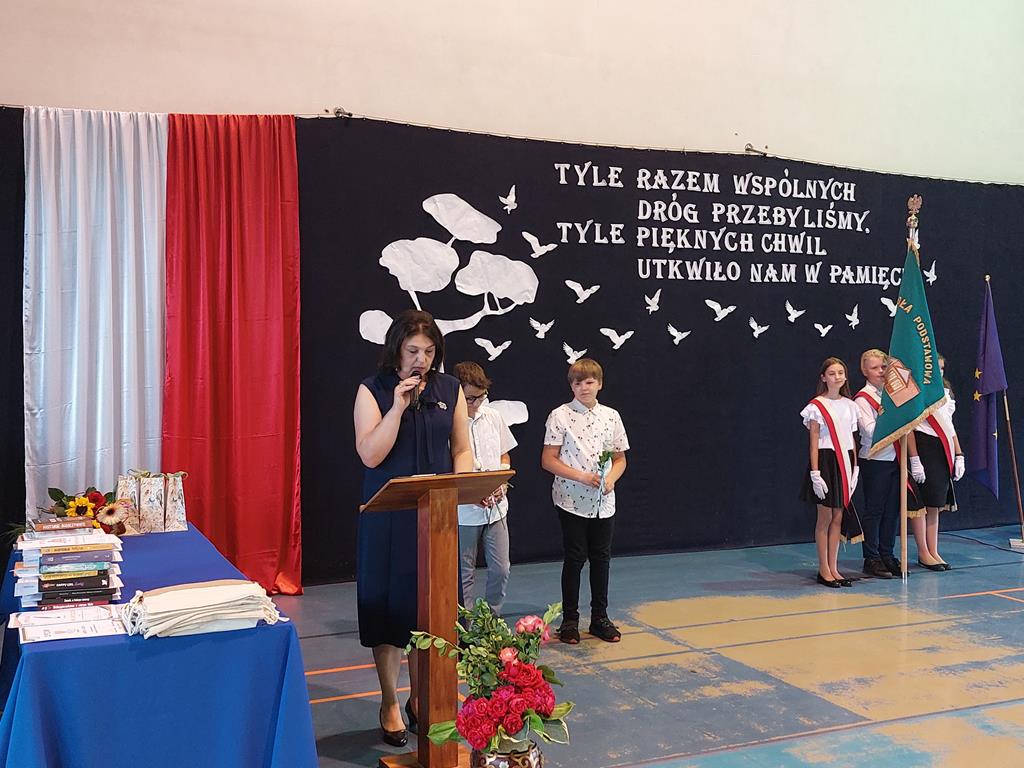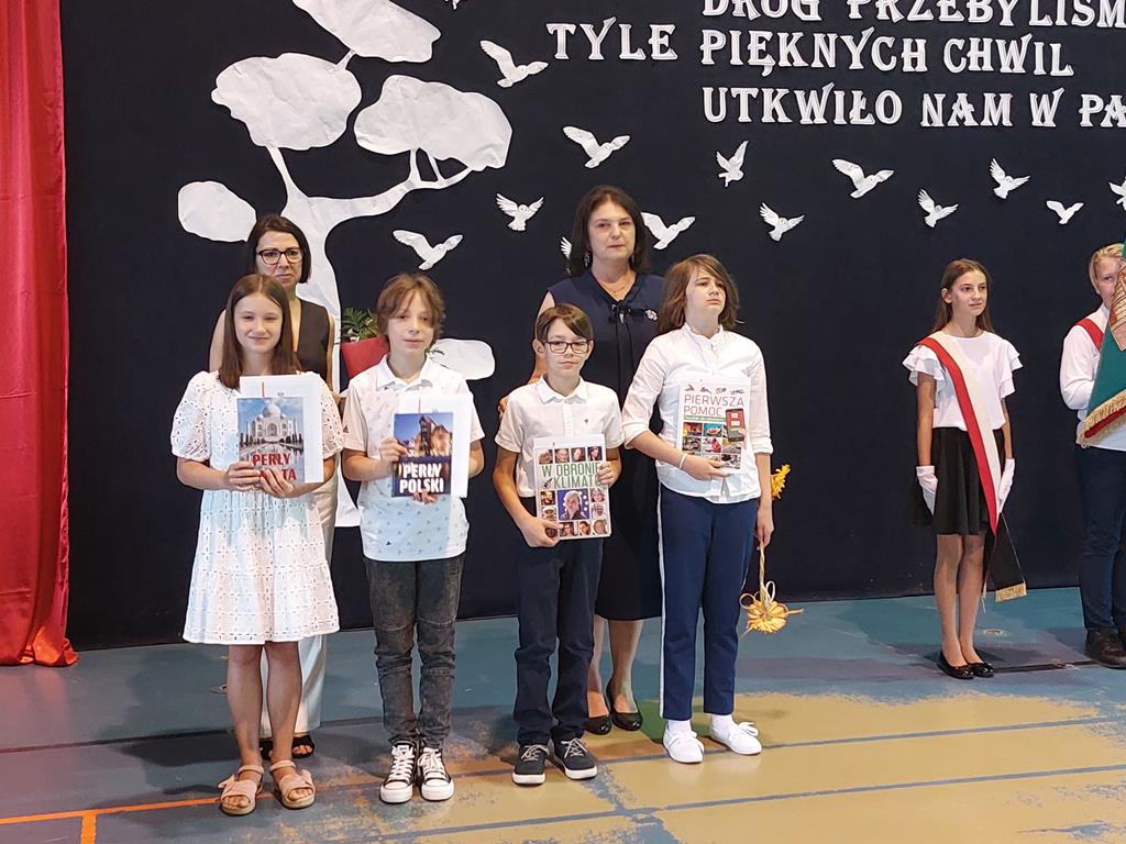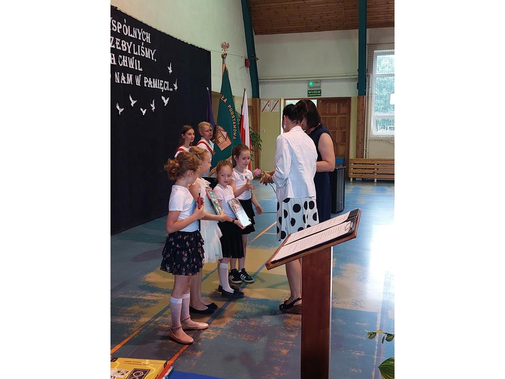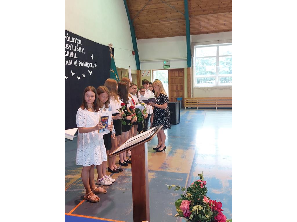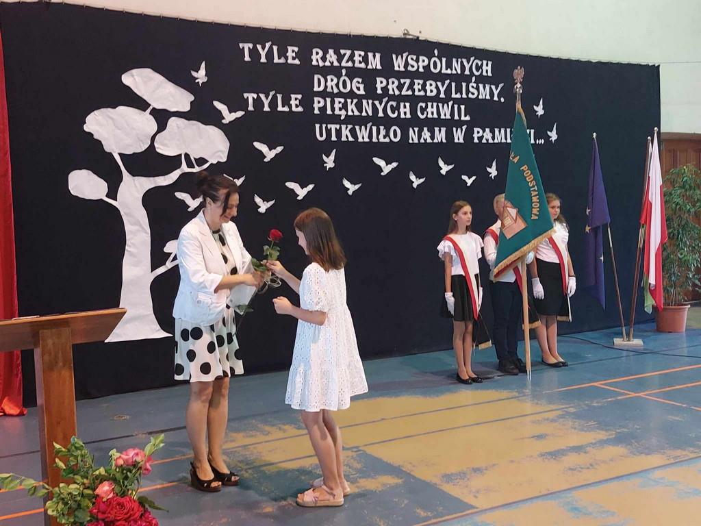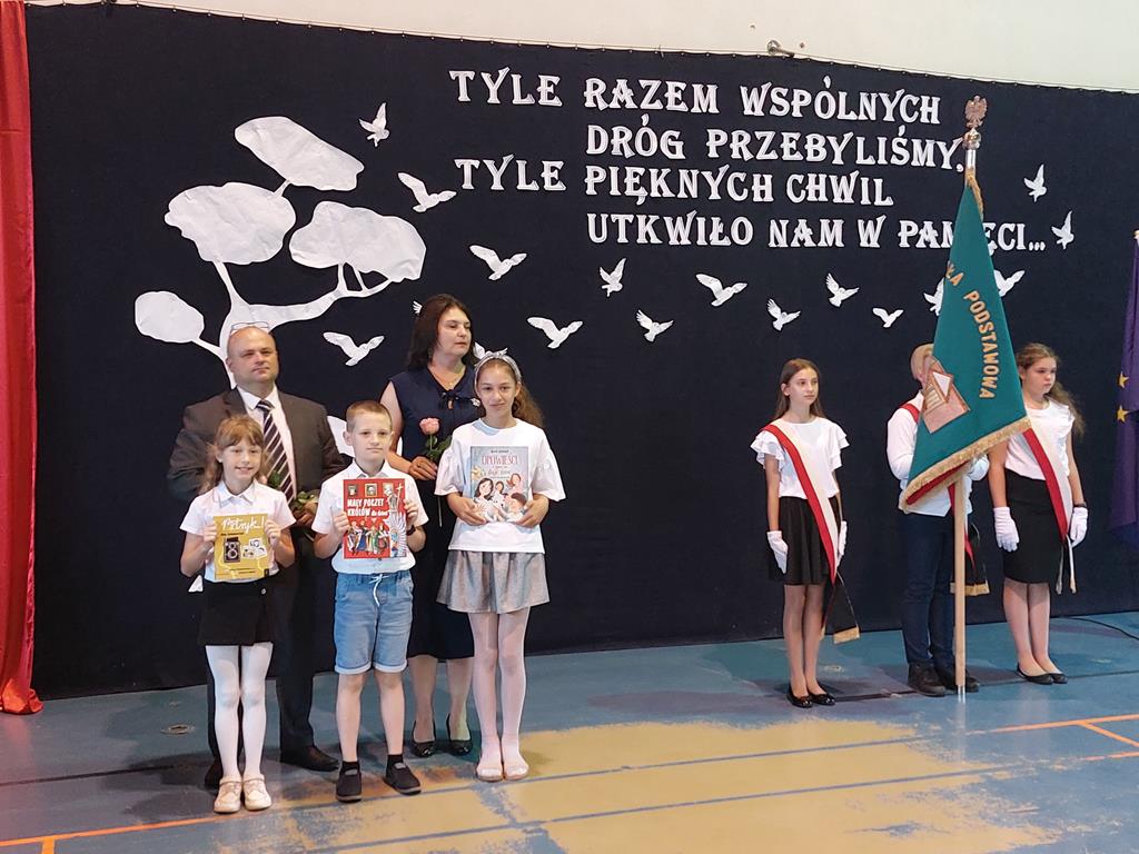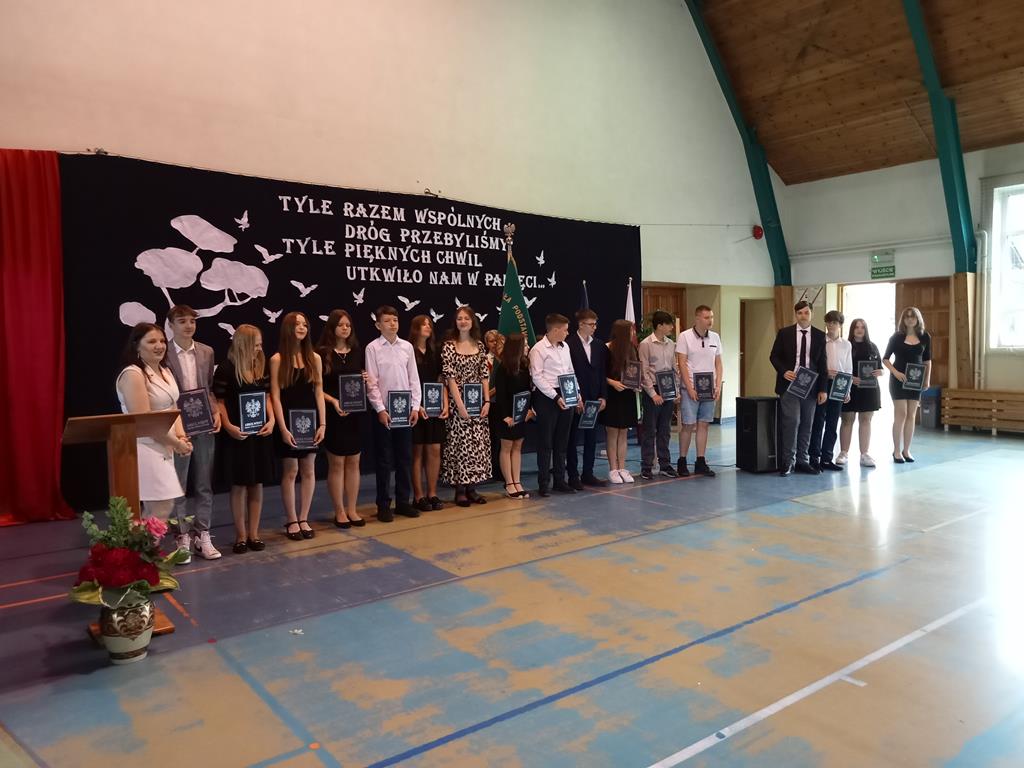 Wyróżnieni uczniowie otrzymali nagrody i dokonali wpisu do Złotej Księgi absolwentów szkoły, a ich rodzice – listy gratulacyjne. Wychowawca klasy ósmej – Anna Filipice wręczyła Świadectwa Ukończenia Szkoły pozostałym absolwentom.